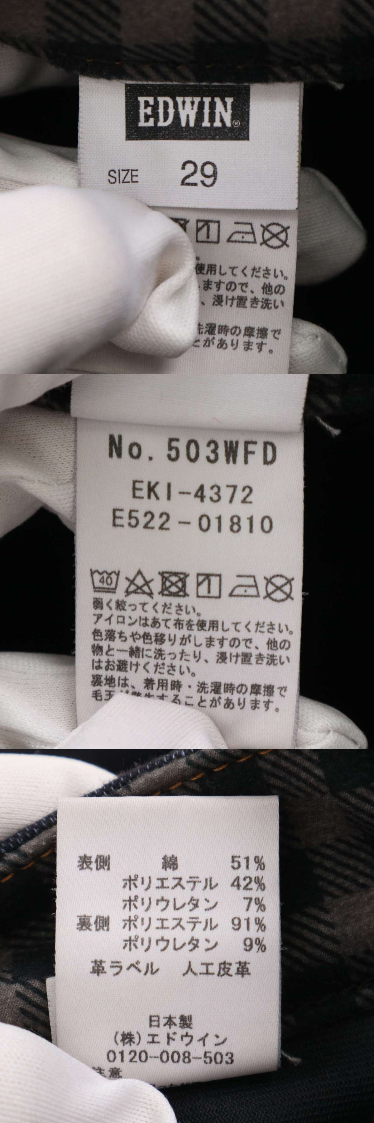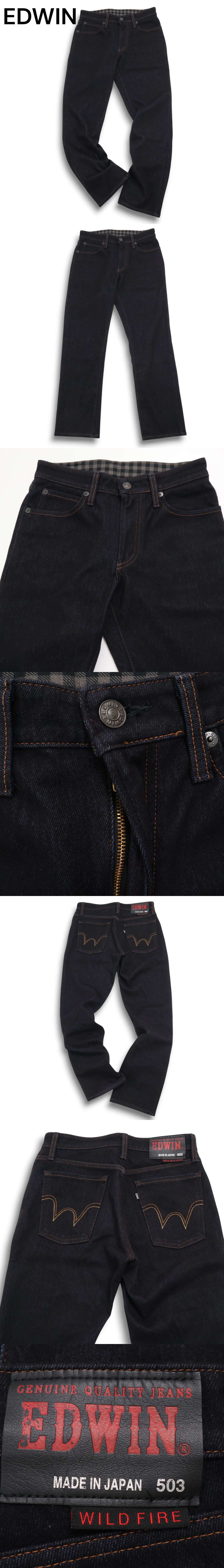 EDWIN エドウィン 503WFD WILD FIRE★ 防風 防寒 裏起毛 ストレッチ デニム パンツ ジーンズ Sz.29 メンズ 黒 日本製 バイク