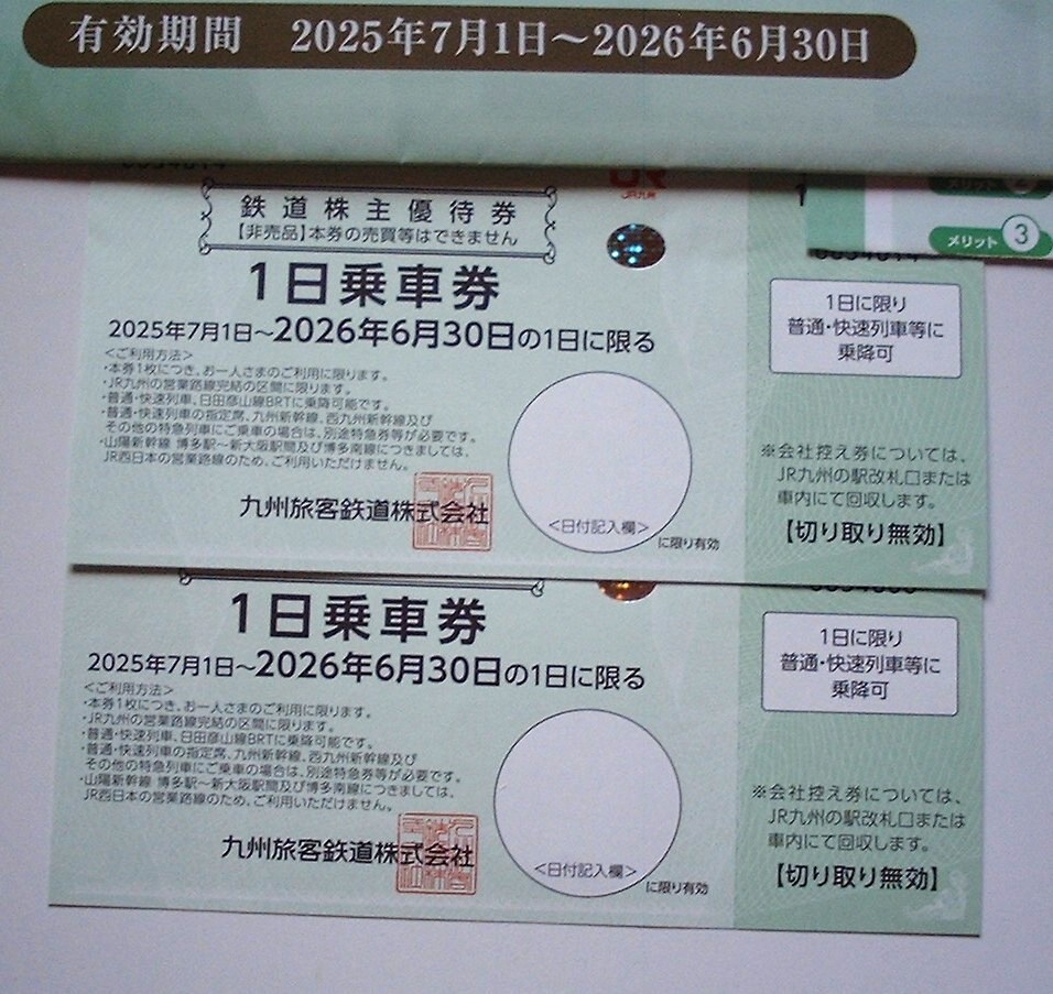 ●JR九州 株主優待券 1日乗車券× 2 枚●有効期限2026年6月30日まで