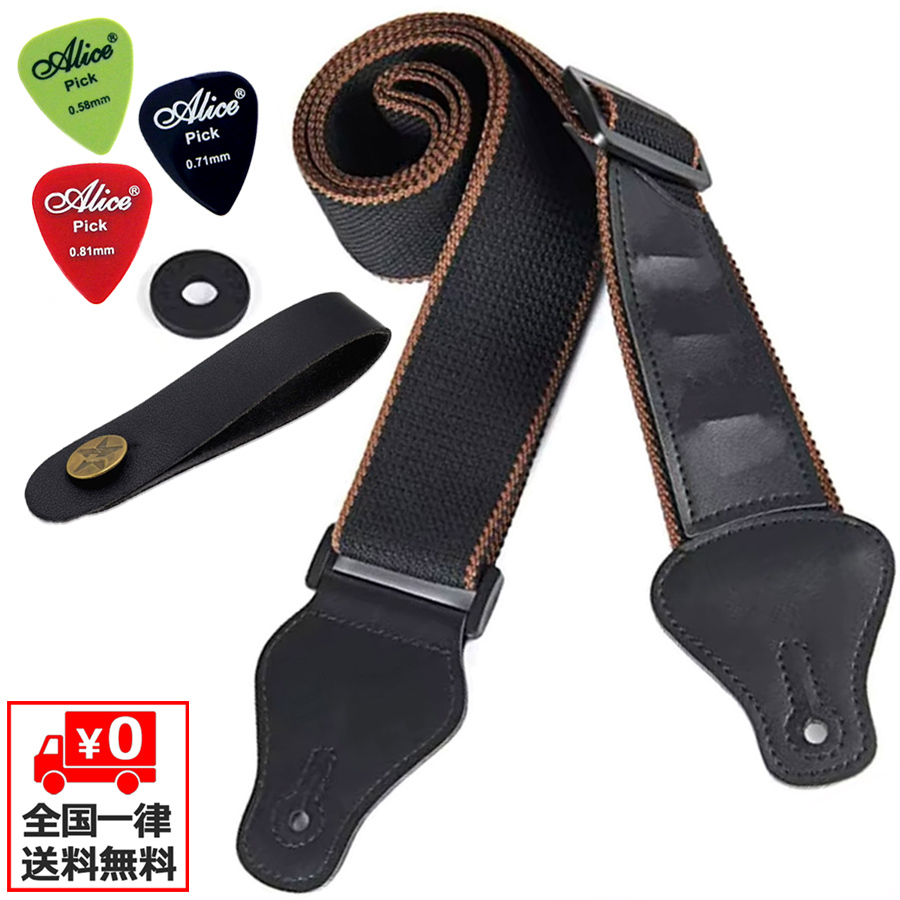 ★ ギター コットンストラップ(3ピックポケット付)&ネックホルダー&ストラップロック&ピック(3枚)/4点セット