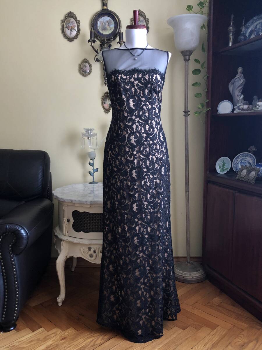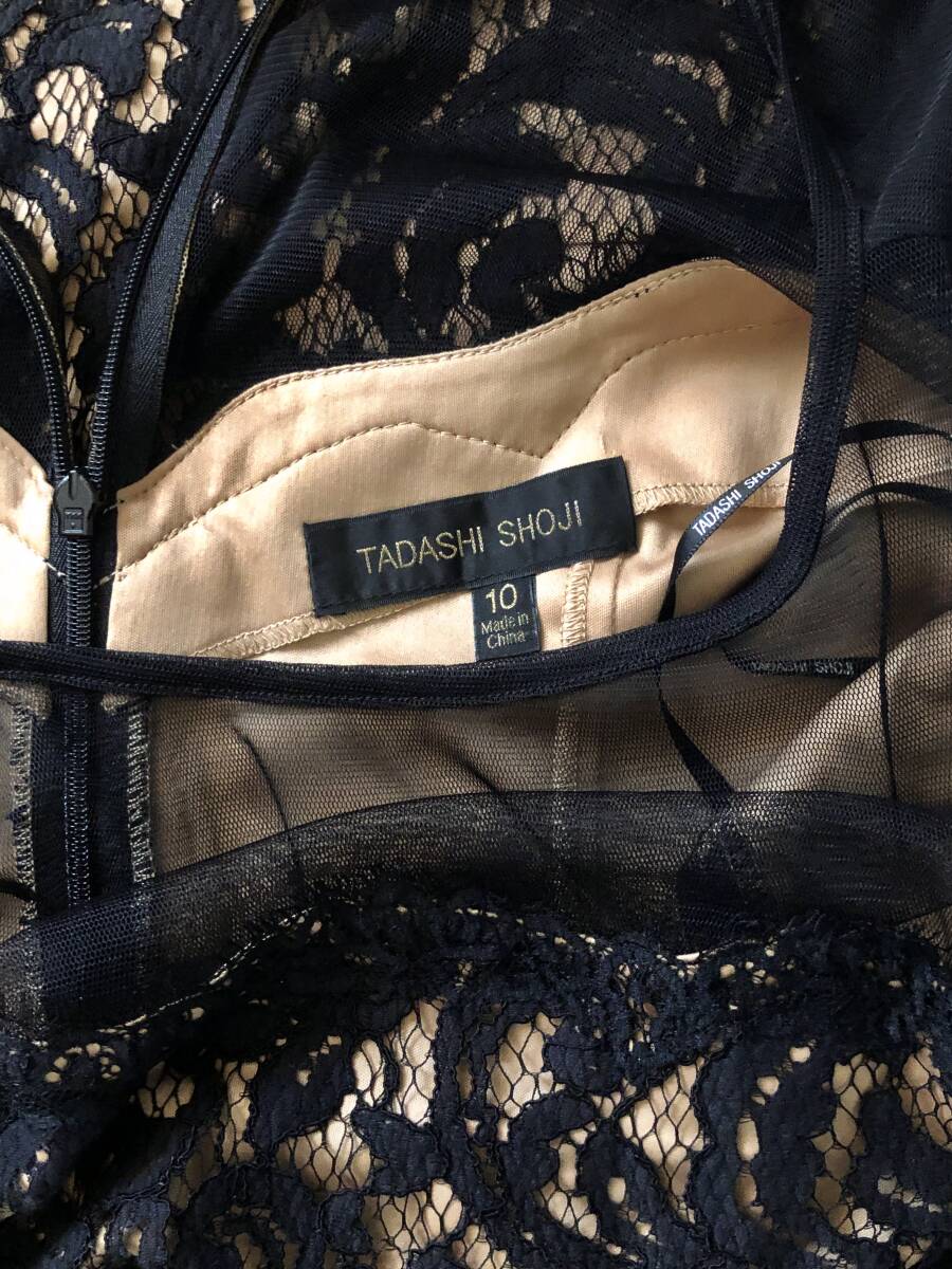 【状態】中古 大変綺麗なお品です 【ブランド】TADASHI SHOJI 【サイズ】表示サイズ/us(アメリカ)10 日本対応サイズ目安/ 13号サイズぐらい *個人差がございます。必ず採寸をご参照ください。 【採寸】平置き採寸です。 肩幅36㎝、身幅47㎝、ウエスト41cm、ヒップ52㎝、着丈145㎝ 【カラー】黒 【素材】コットン45%、レーヨン35%、ナイロン20% 【裏地の素材】ポリエステル100% 【着脱】後ファスナー