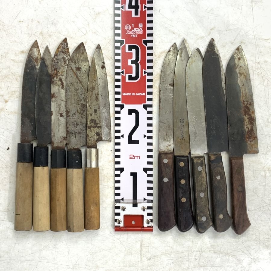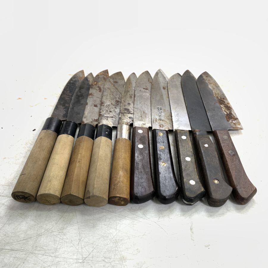 【まとめ売り】三徳/万能包丁等の10本 光陽/堺高秀/堺武守/堺久松/木屋康宏/京都賴光/源菊水/刀匠庵/他 和包丁等*ジャンク品【福岡】