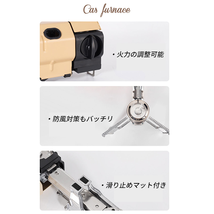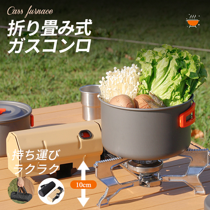 折りたたみ式 コンロ ガスバーナー カセットコンロ アウトドア コンパクト 軽量 屋外 野外 専用ケース付き G246 ベージュ
