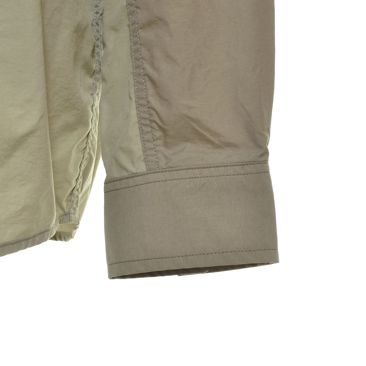 ハリのある生地は、天然素材のようなナチュラルな風合いを持ちながら、撥水性を持ち合わせているナイロン100%。シルエットはボックスフィットで、フロントはドットボタン仕様で、静電気の発生を抑える静電ケア設計機能付きです。