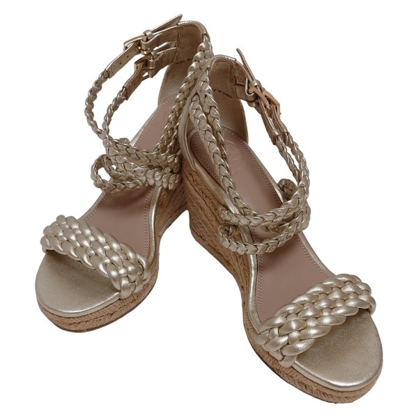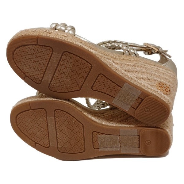 トリーバーチ TORY BURCH パンプス 5 - リネン、レザー ゴールド レディース ウェッジソール/編み込み 美品 靴