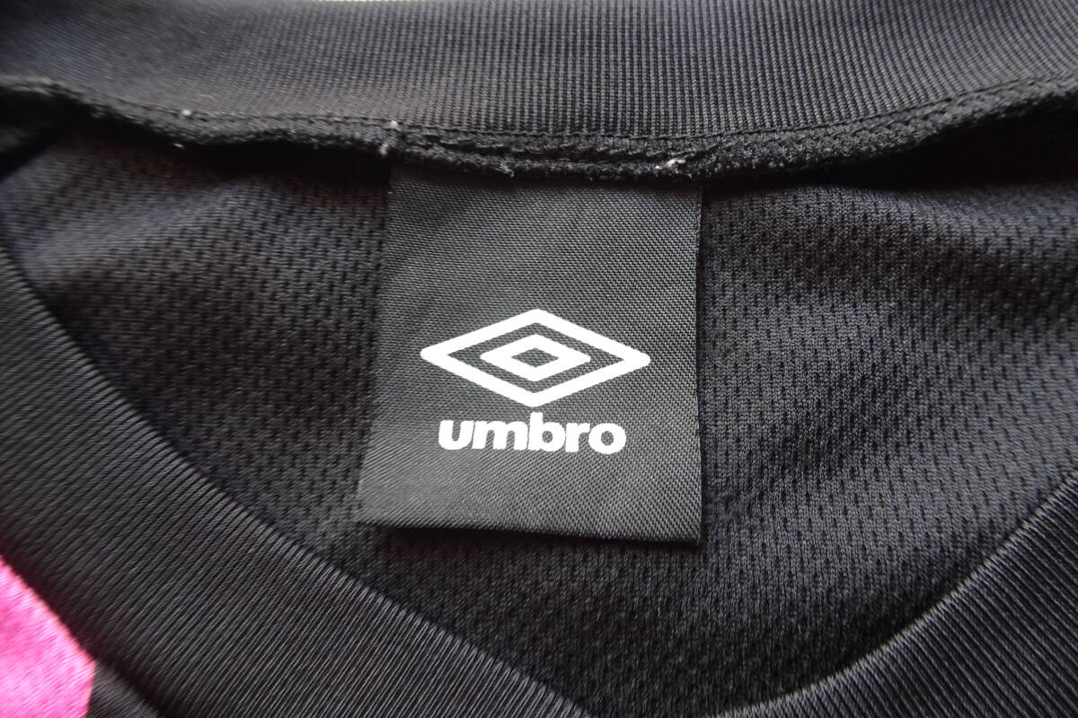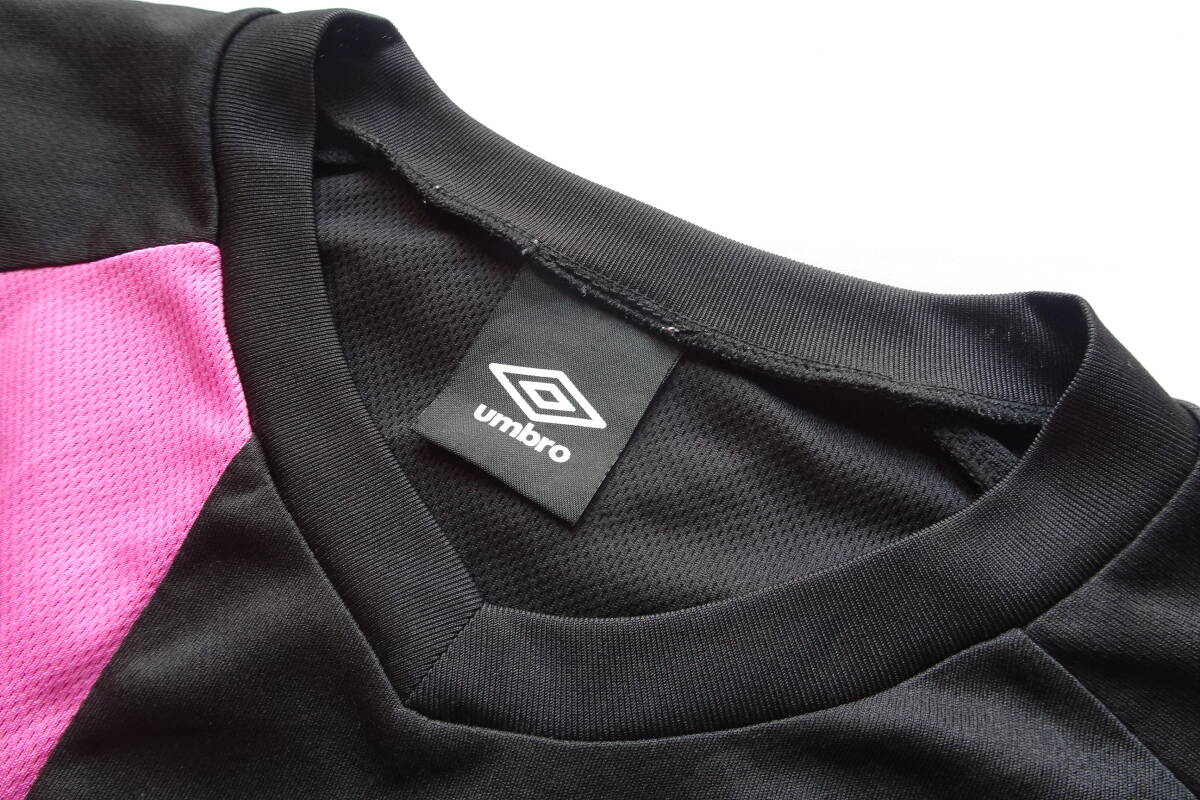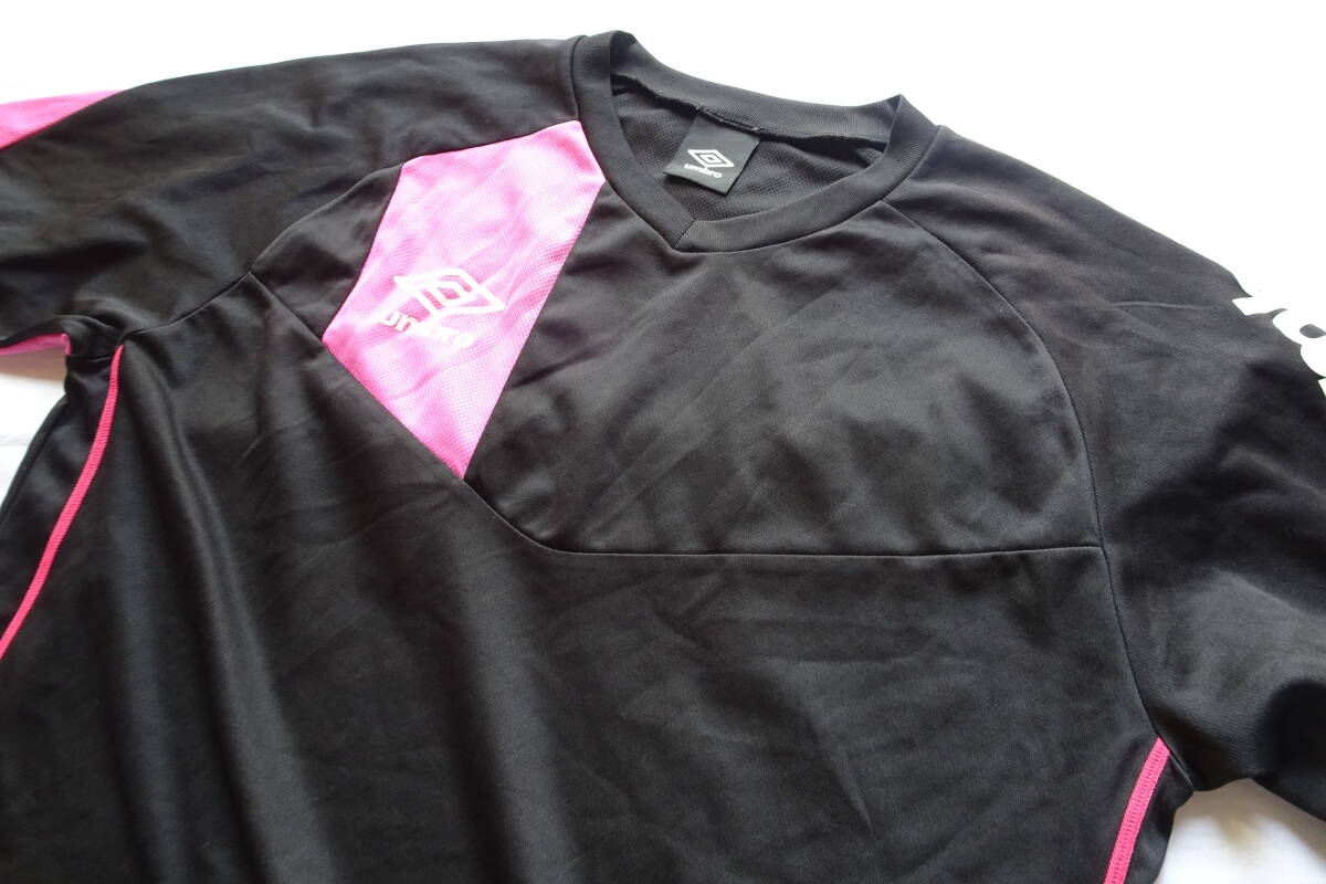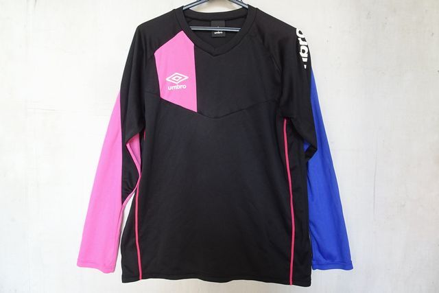 umbro/アンブロ/UBA7607SDL/長袖Tシャツ/速乾性/Vネック/袖ピンク・青切替配色/ピンクステッチ/スポーツ/黒/ブラック/Lサイズ(9/16R7)