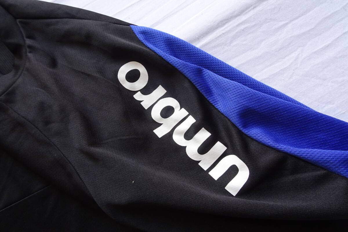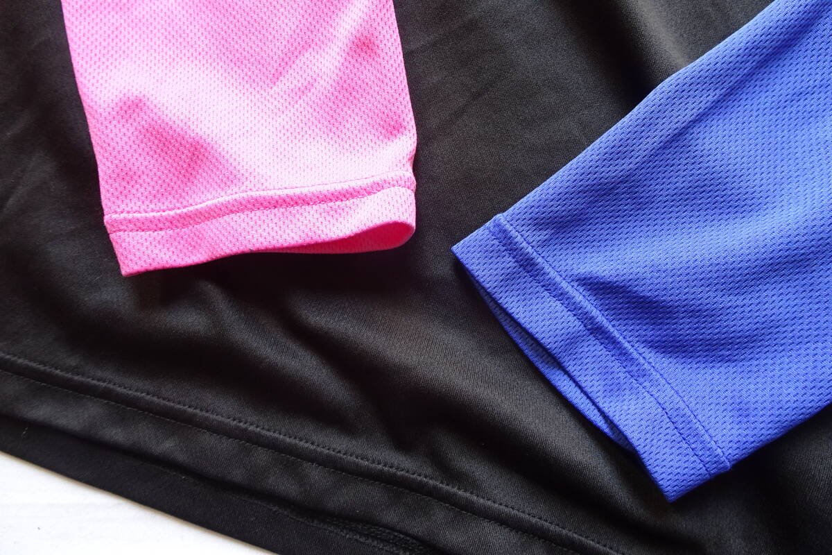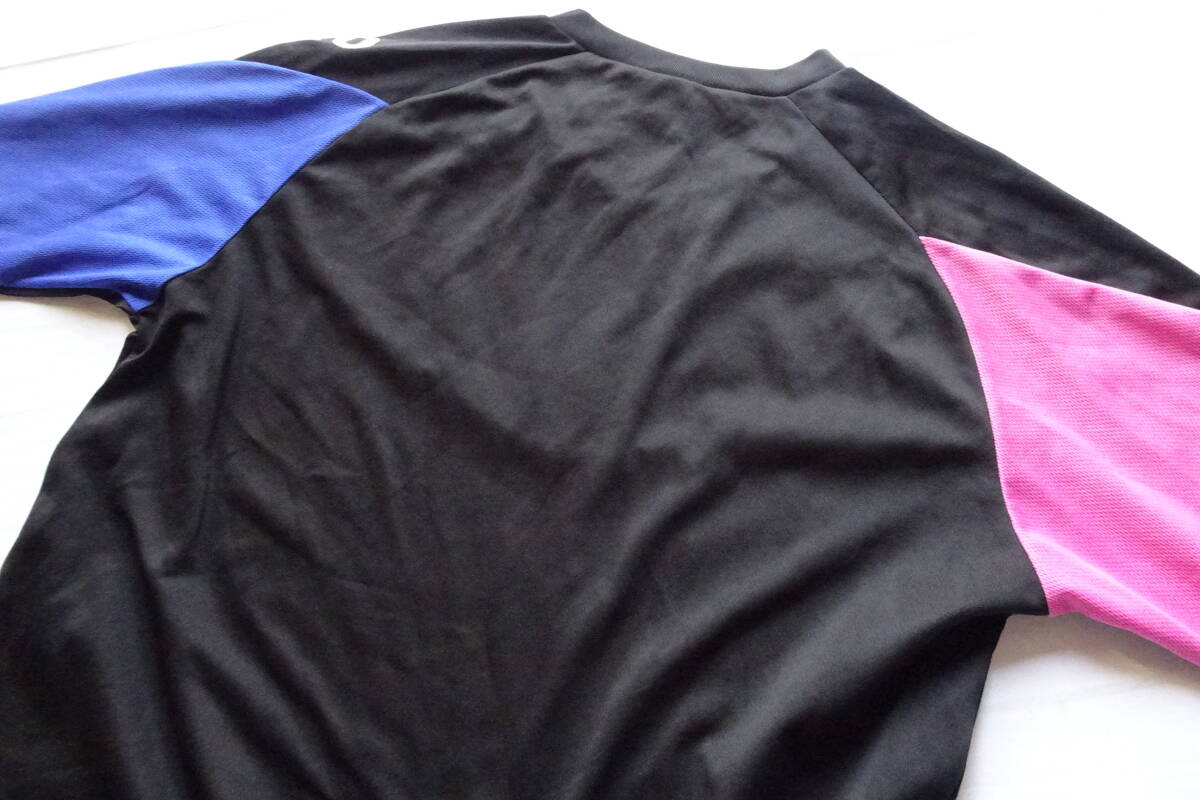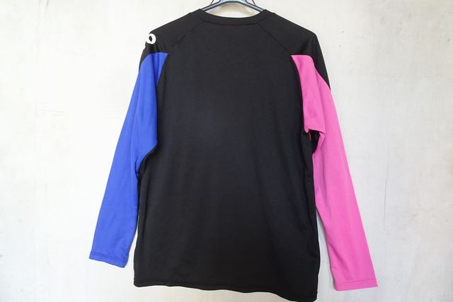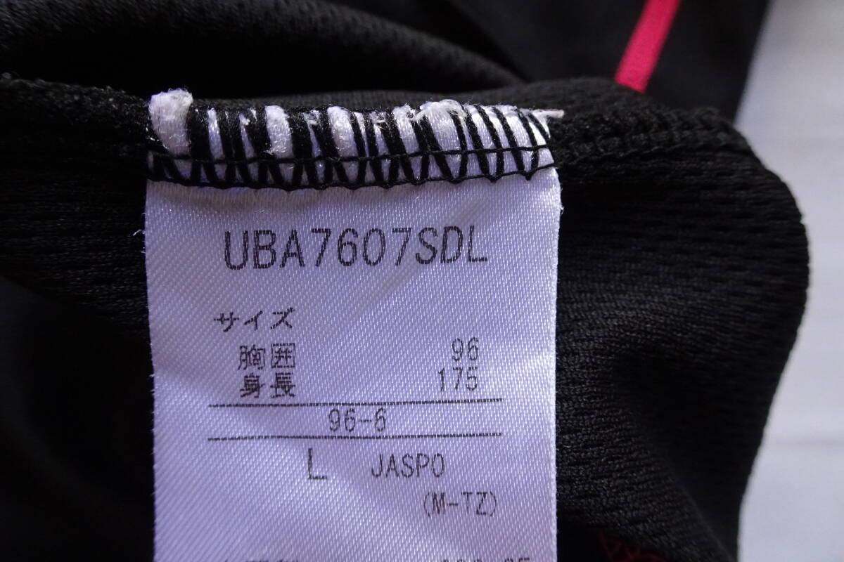 umbro/アンブロ/UBA7607SDL/長袖Tシャツ/速乾性/Vネック/袖ピンク・青切替配色/ピンクステッチ/スポーツ/黒/ブラック/Lサイズ(9/16R7)