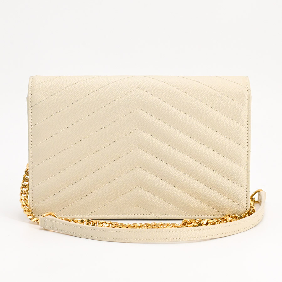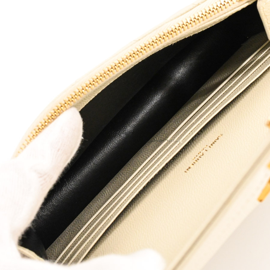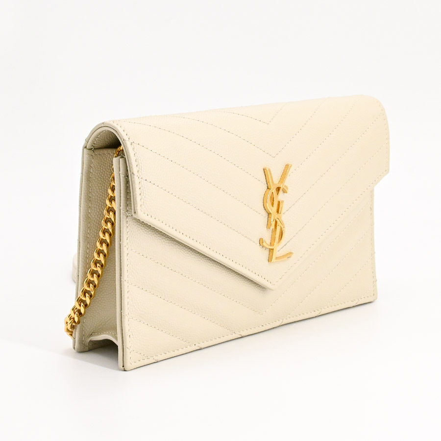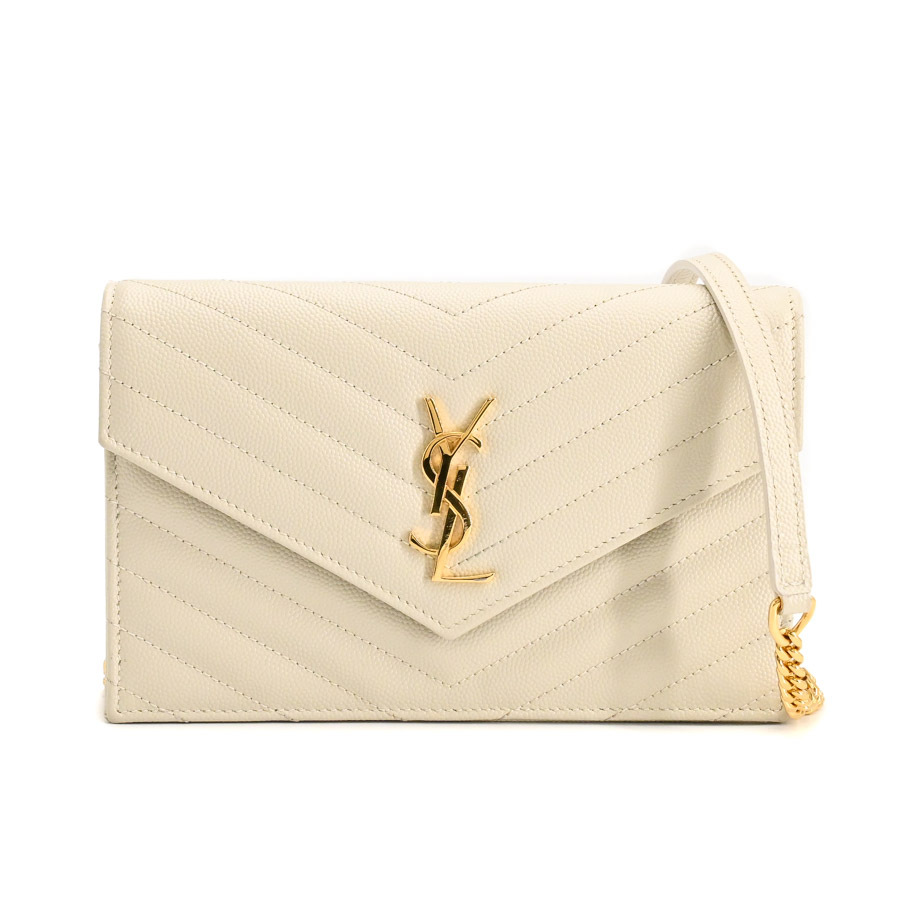 サンローラン カサンドラエンベロープチェーンウォレット チェーンウォレット 742920 アイボリー レディース 中古A品