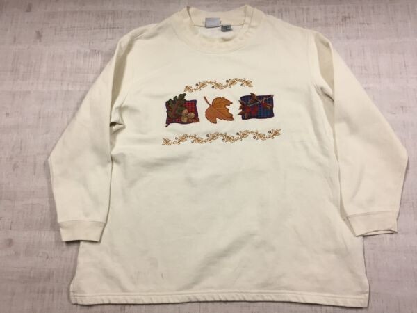 Bobbie Brooks アメカジ オールド 90s 古着 可愛い クリスマス刺繍 アップリケ スウェット トレーナー レディース レイヤード 刺繍 20 生成