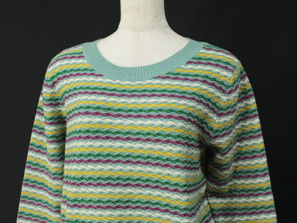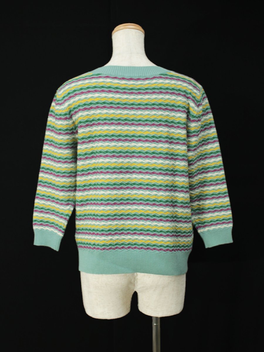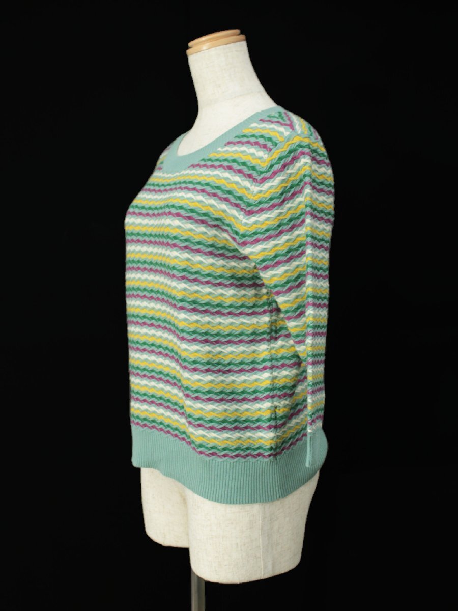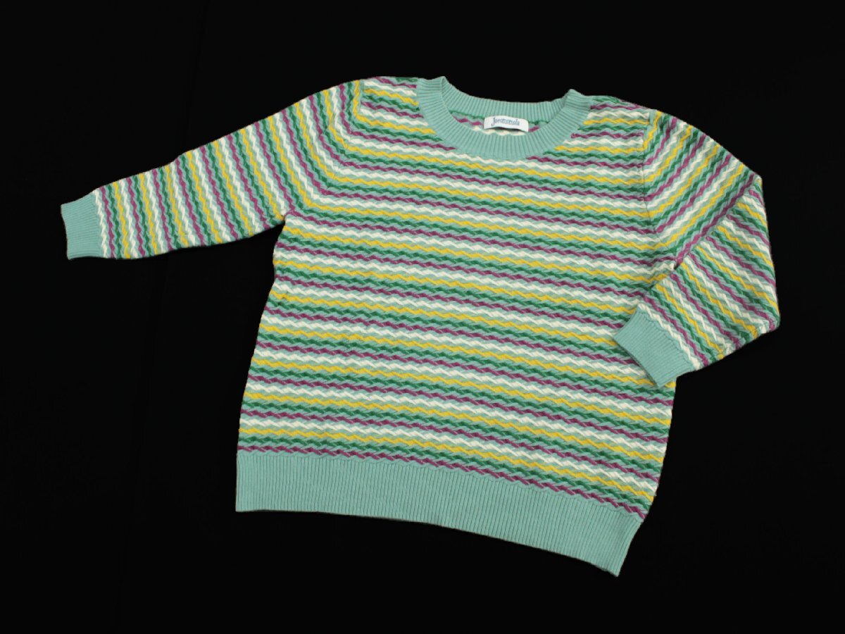 ポップな配色、7分袖の軽やかなデザインで、様々なボトムスに合わせやすいアイテムです。