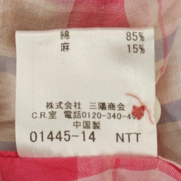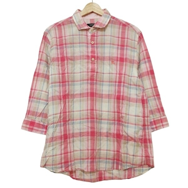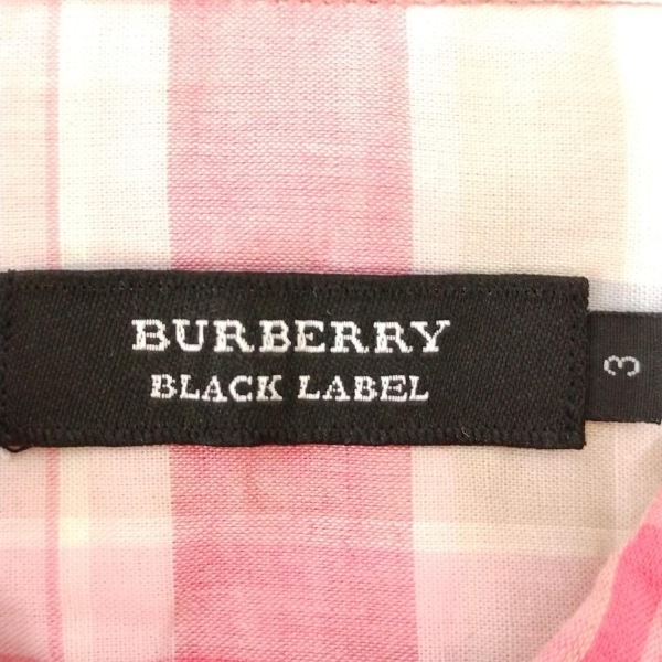 バーバリーブラックレーベル Burberry Black Label 七分袖シャツ サイズ3 L - ピンク×白×マルチ メンズ チェック柄/ハーフボタン 美品
