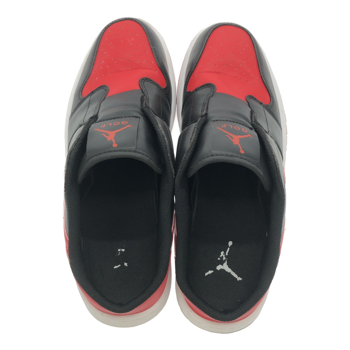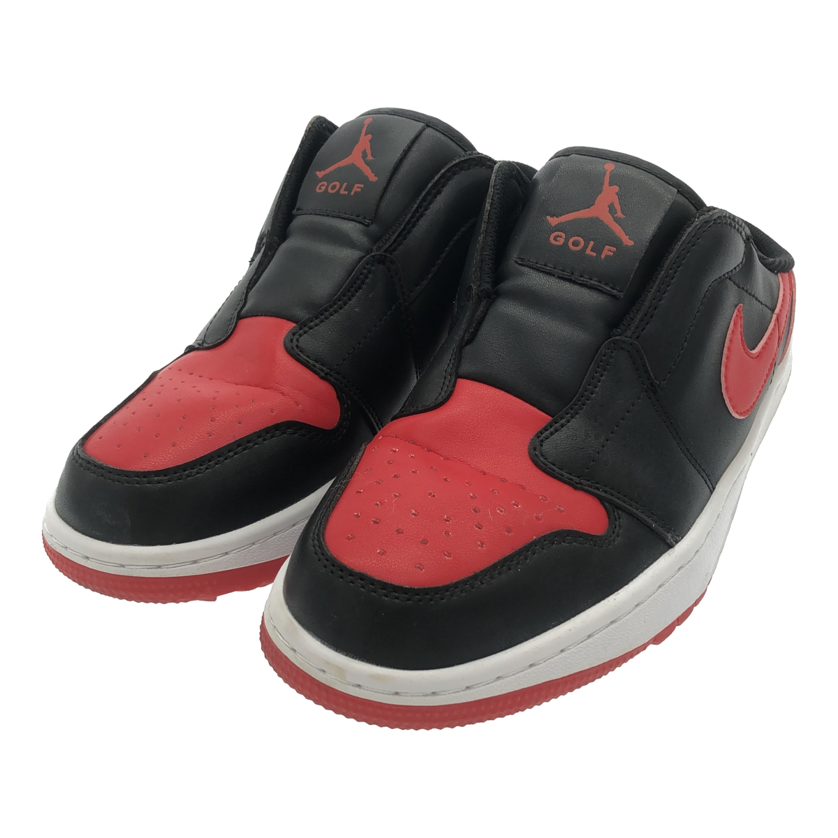 | STAFF COMMENT | ナイキ AIR JORDAN Mule Golf Bred が入荷しました。人気のエアジョーダン1をミュールスタイルにアレンジしたゴルフシューズです。レッド、ブラック、ホワイトの配色が足元を彩ります。サイズはUS9.5/27.5cm、生産国はベトナムです。状態ランクはC。折りジワ、やや汚れ、使用感はございますが、まだまだご使用いただけます。カジュアルなゴルフスタイルにぴったりの一足です。 |