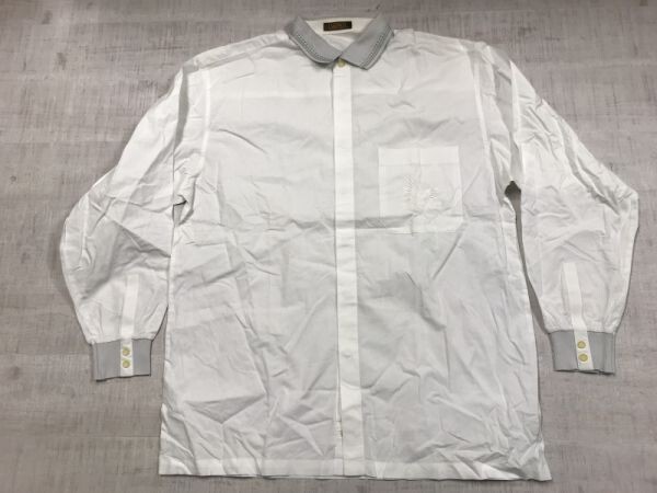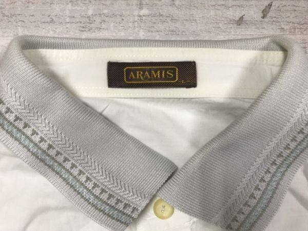 アラミス ARAMIS トラッド レトロ モード 古着 刺繍 襟・袖リブ切替 ボックスシルエット 長袖ドレスシャツ メンズ 日本製 L 白 です。