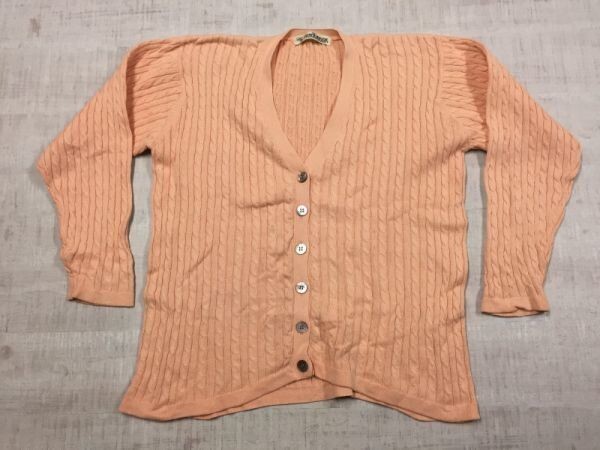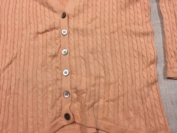 ニューヨーカー NEWYORKER レトロ トラッド 古着 ケーブル編み Vネック コットンニット カーディガン レディース 綿100% M サーモンピンク です。