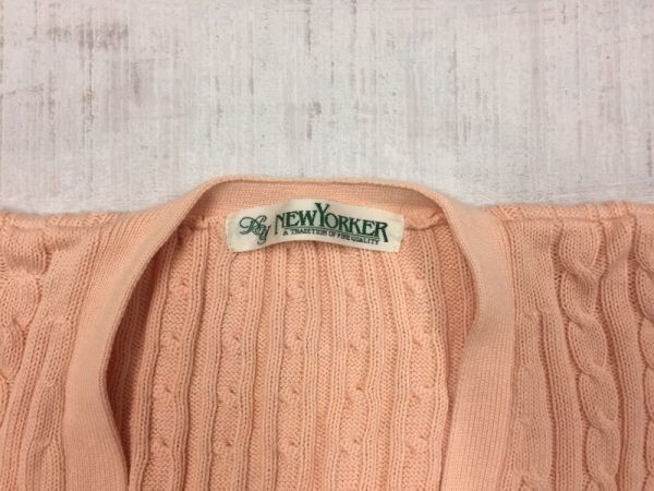 ニューヨーカー NEWYORKER レトロ トラッド 古着 ケーブル編み Vネック コットンニット カーディガン レディース 綿100% M サーモンピンク