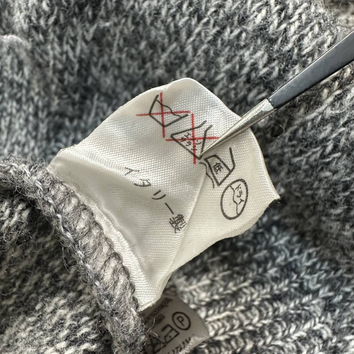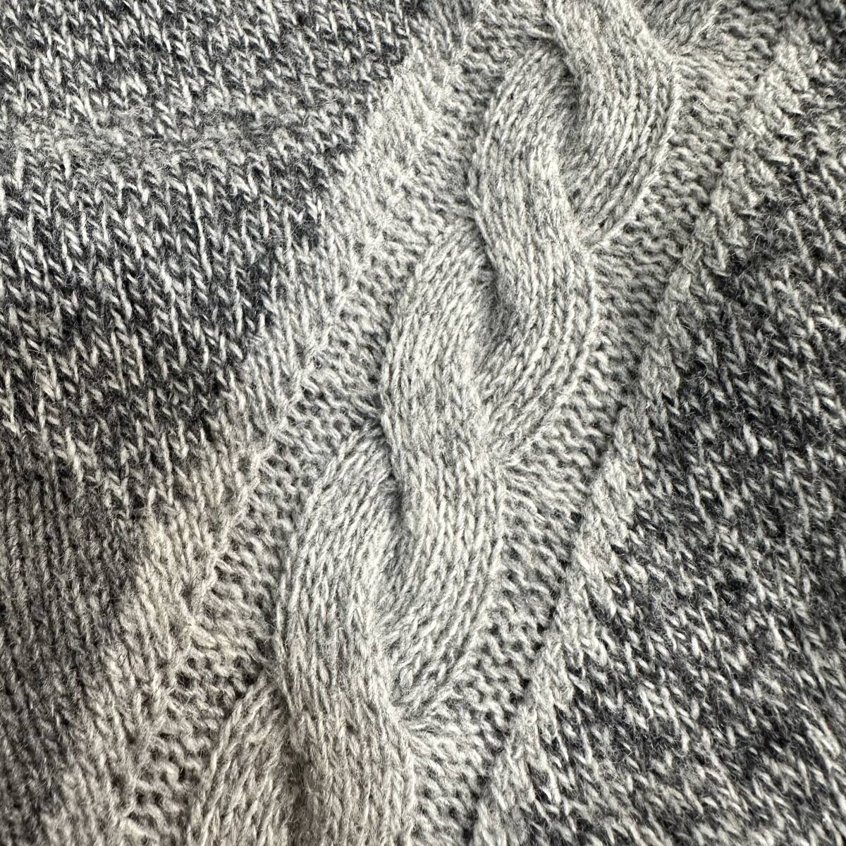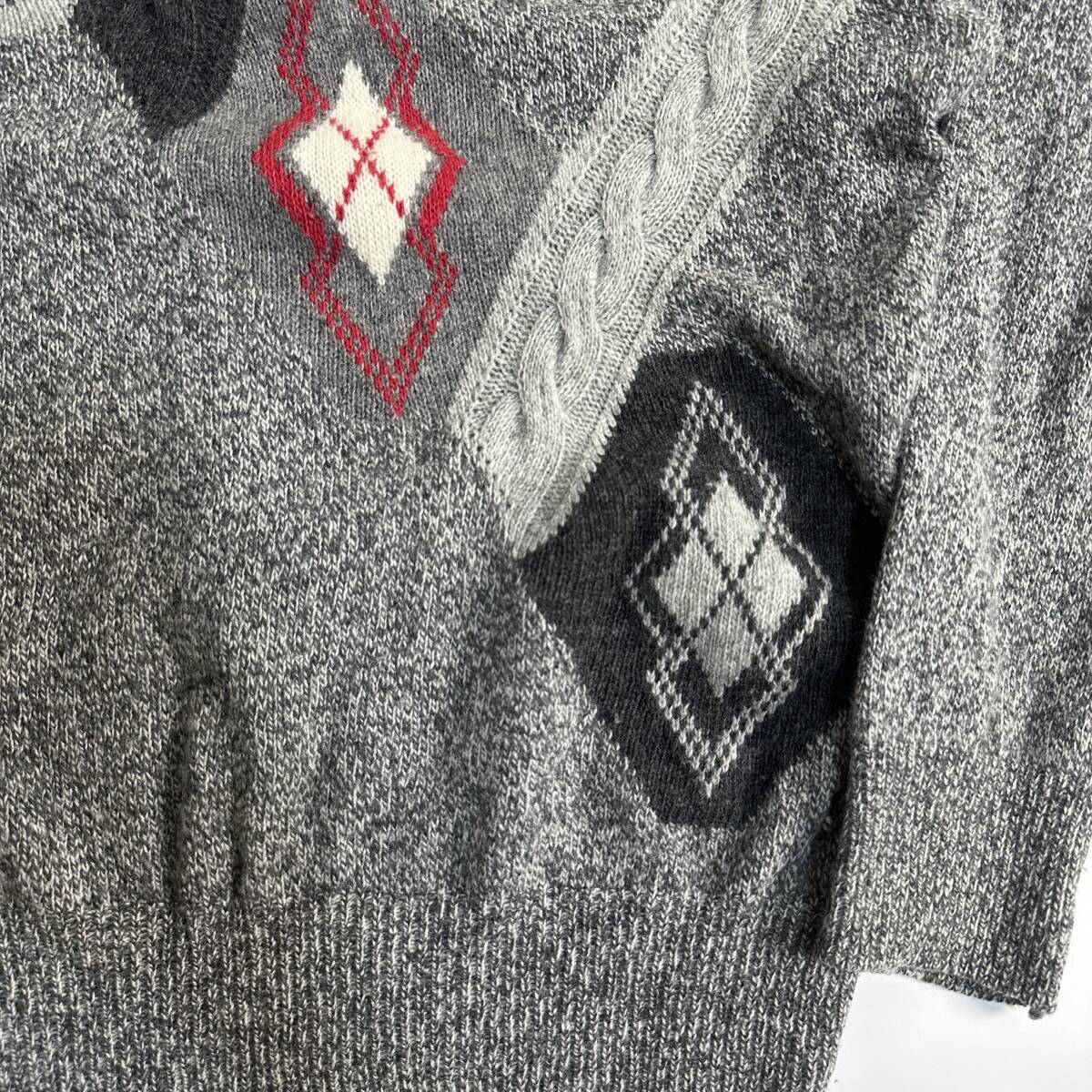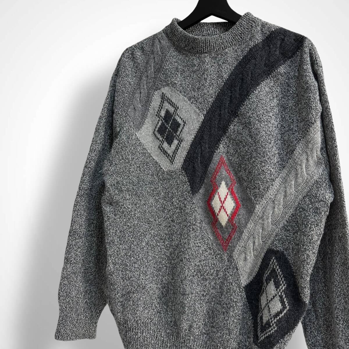 希少【Euro vintage】イタリア製 アーガイル 変形ケーブルデザイン モックネックニット レトロ ビンテージ古着 グレー ユーロ古着
