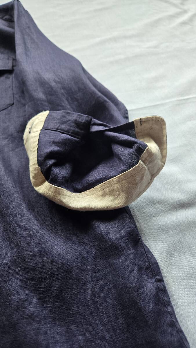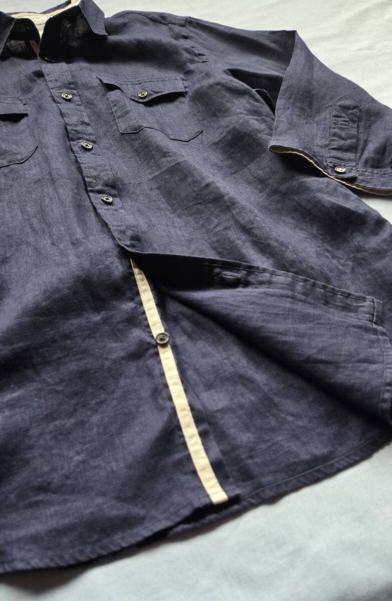 送料無料 TK THE SHOP TK タケオキクチ normandy linen フレンチリネン ネイビー リネン ワークシャツ 七分袖 シャツ TAKEO KIKUCHI
