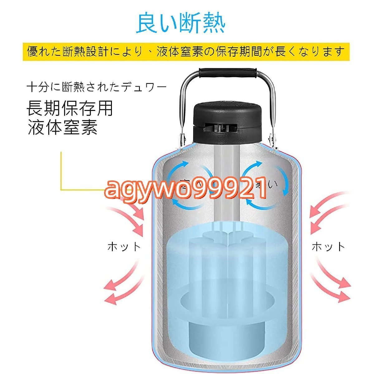 ▲【高品質な航空機用アルミニウム】液体窒素容器は、高強度の航空機用アルミニウム合金を使用しており、長寿命です。 不適切な取り扱いにより、タンクに傷や変形があっても、動作します。▲【優れた断熱性】特殊な内部構造により遮音性があり、液体窒素の蒸発を抑えることが