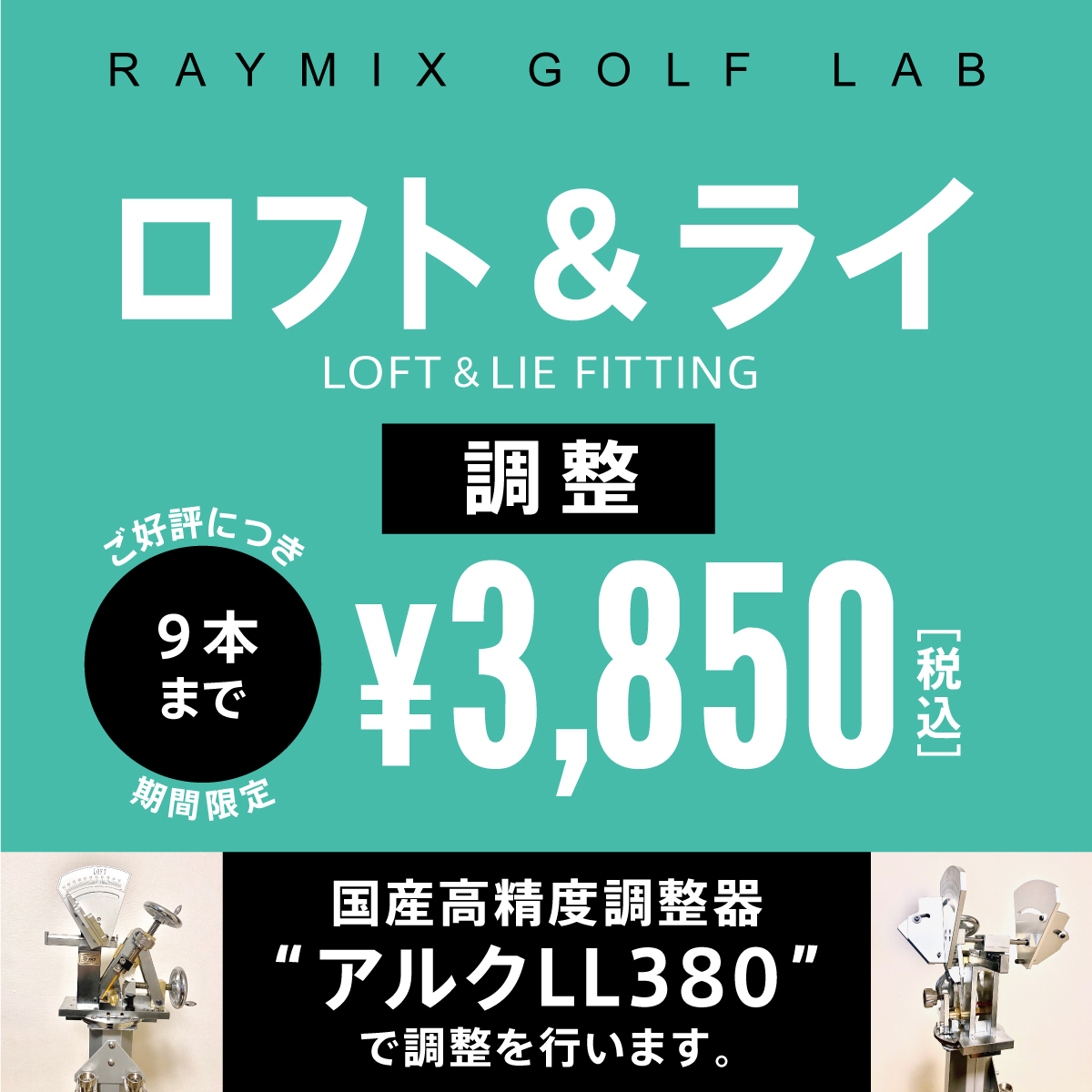 ロフト・ライ角 調整 工賃 9本まで 一律 ¥3,850 税込 高精度調整器アルクLL380を使用 高精度、0.5度きざみ調整可能 TC102  CB302 241CB