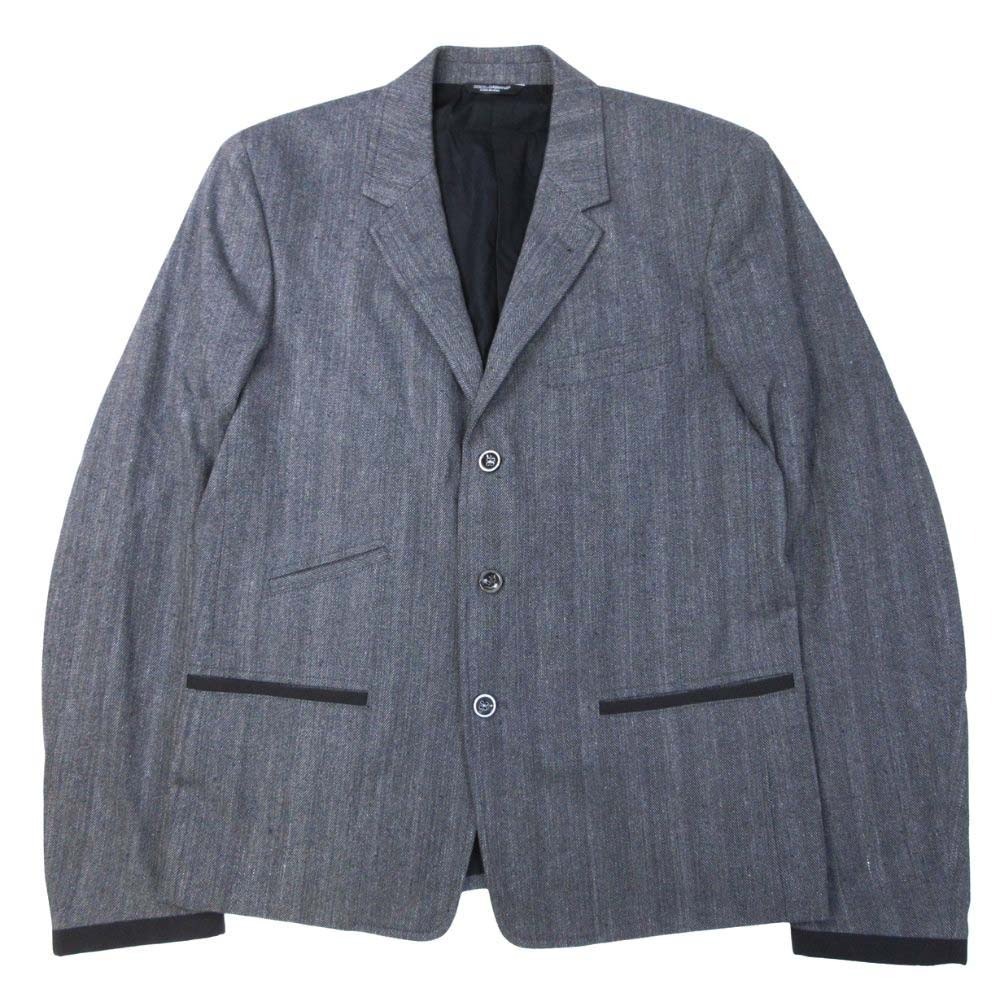 未使用 DOLCE&GABBANA ドルチェ&ガッバーナ ヘリンボーン ツイード テーラードジャケット ブルゾン シングル 3釦 52 グレー 黒