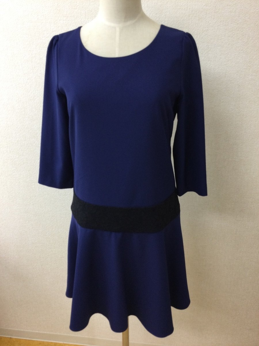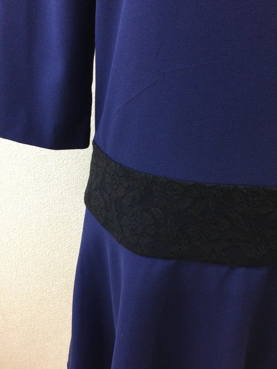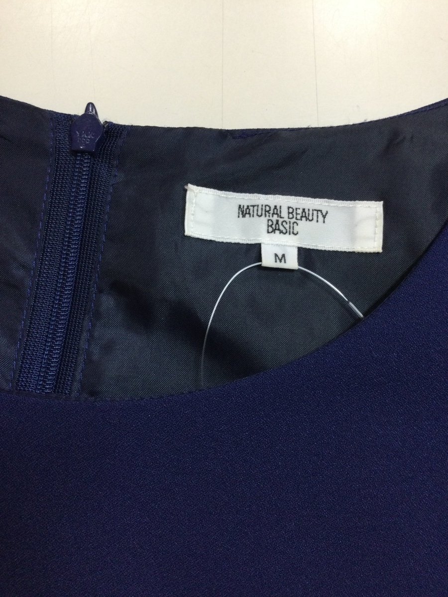 | 管理番号:10^135097 ナチュラルビューティーベーシック ダークブルーワンピース 黒レースのライン 表示サイズ:M 実寸(参考)