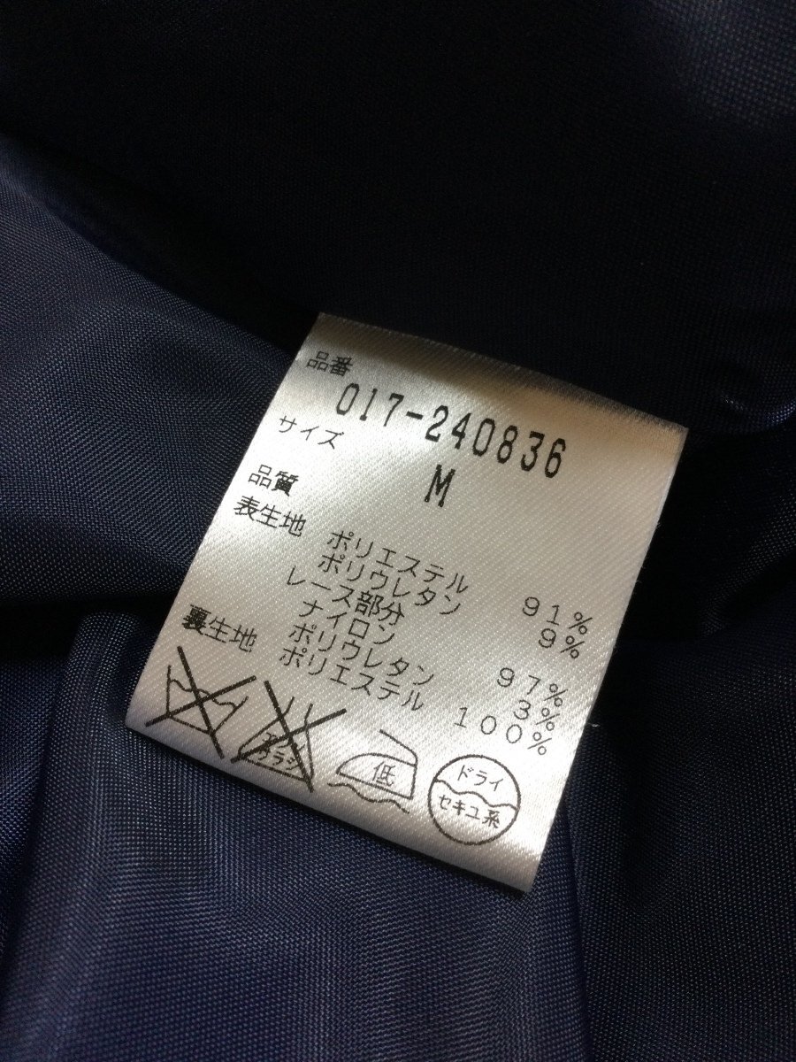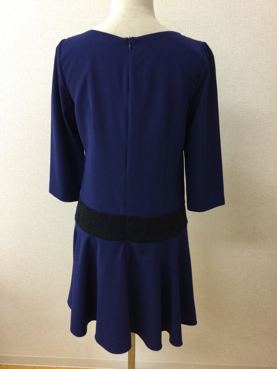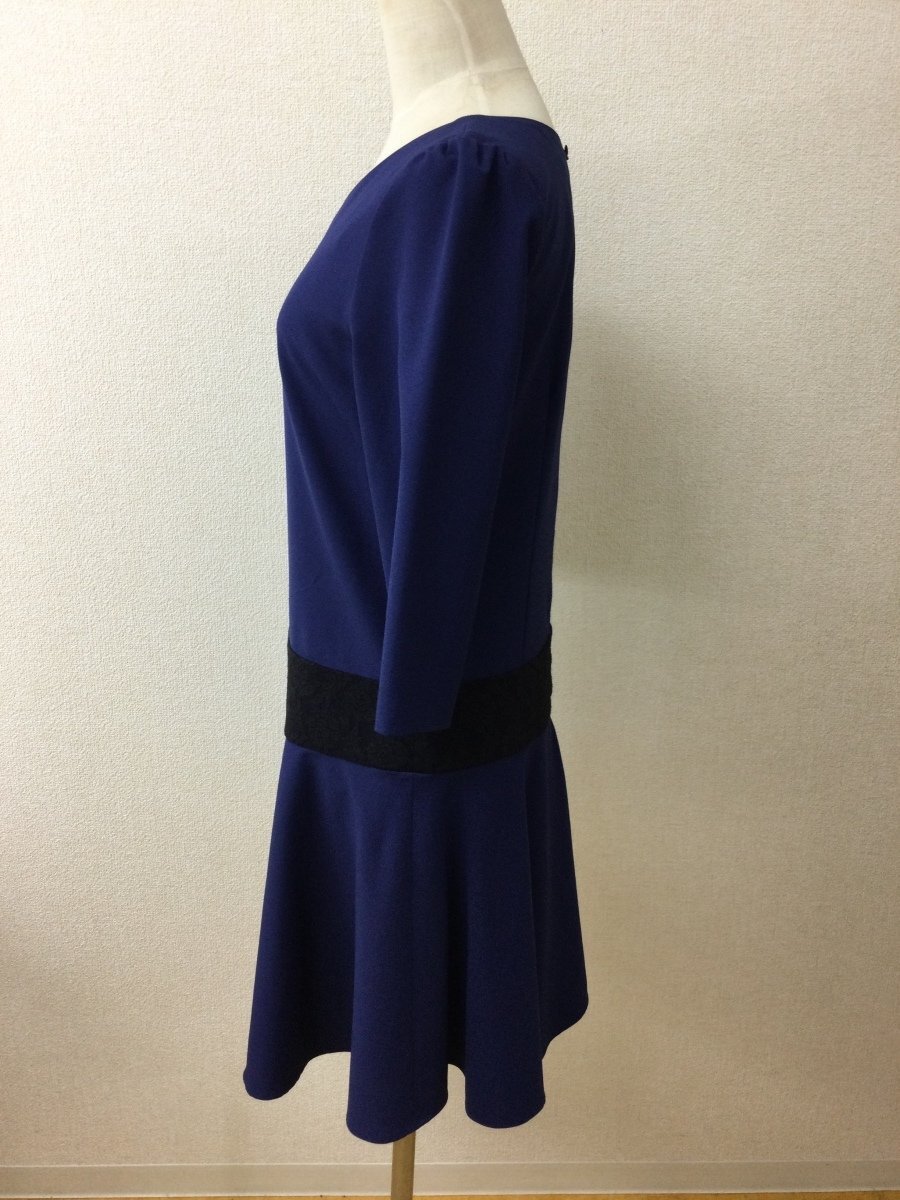 | 管理番号:10^135097 ナチュラルビューティーベーシック ダークブルーワンピース 黒レースのライン 表示サイズ:M 実寸(参考)