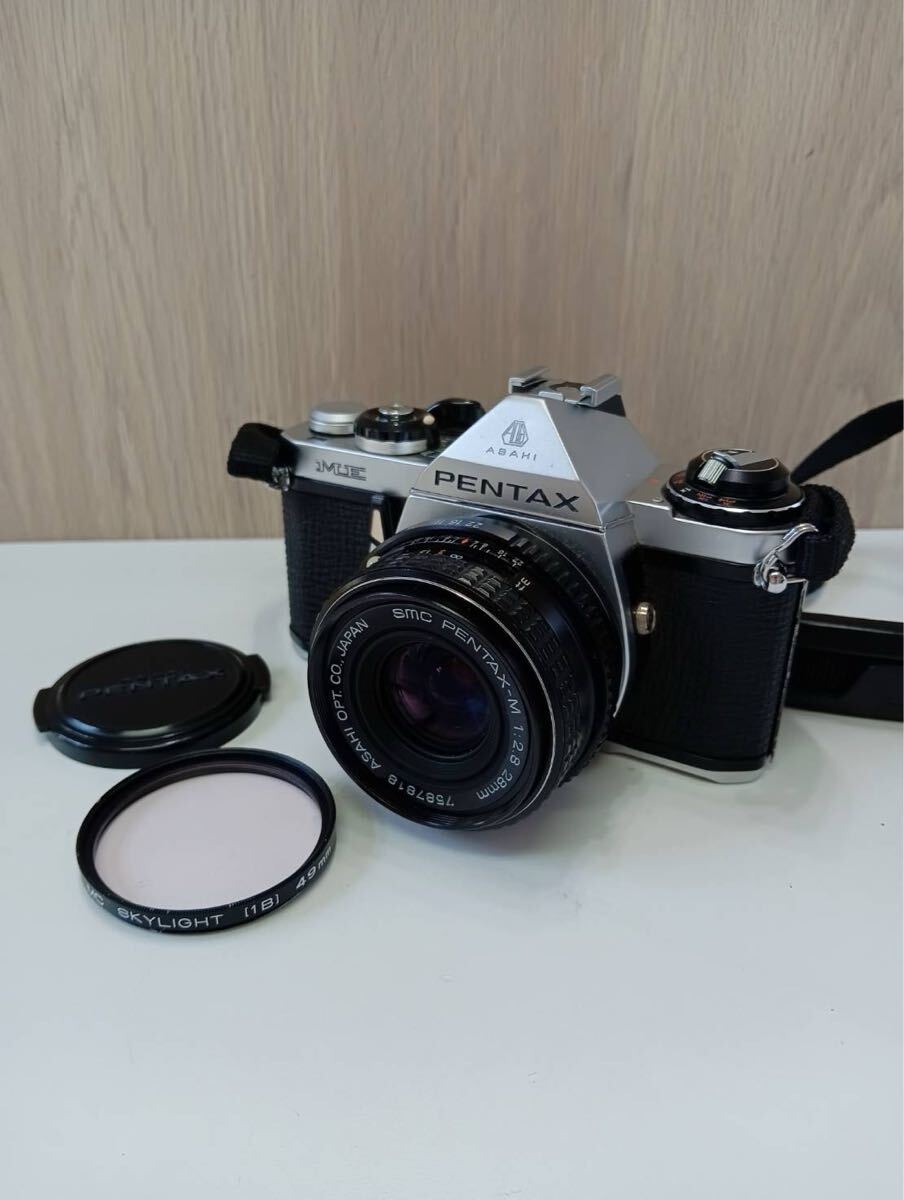 【中古品】旭光学工業 ペンタックス フィルム一眼レフカメラ PENTAX ME レンズ SMC PENTAX-M 1:2.8 28mm レンズフィルター付 現状品
