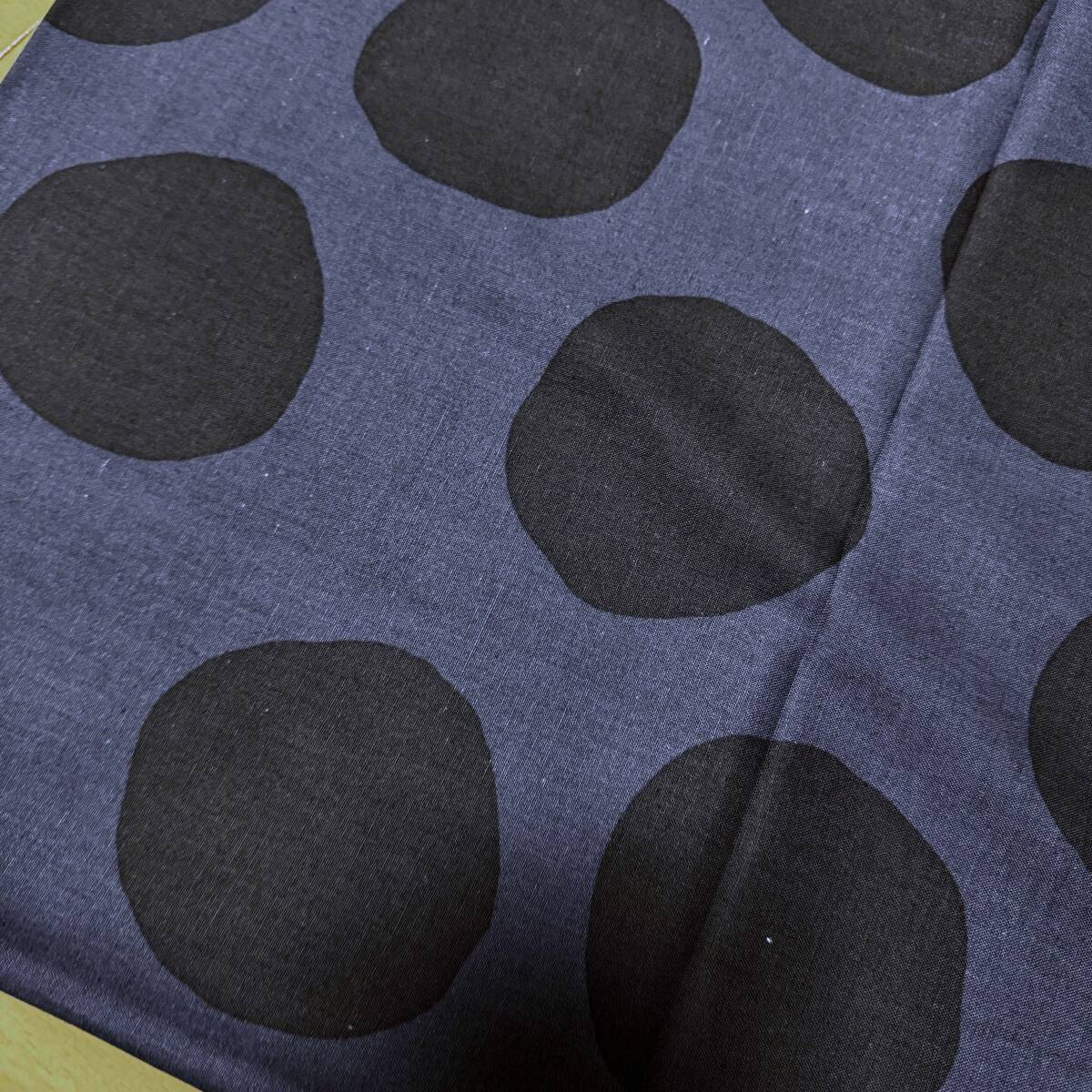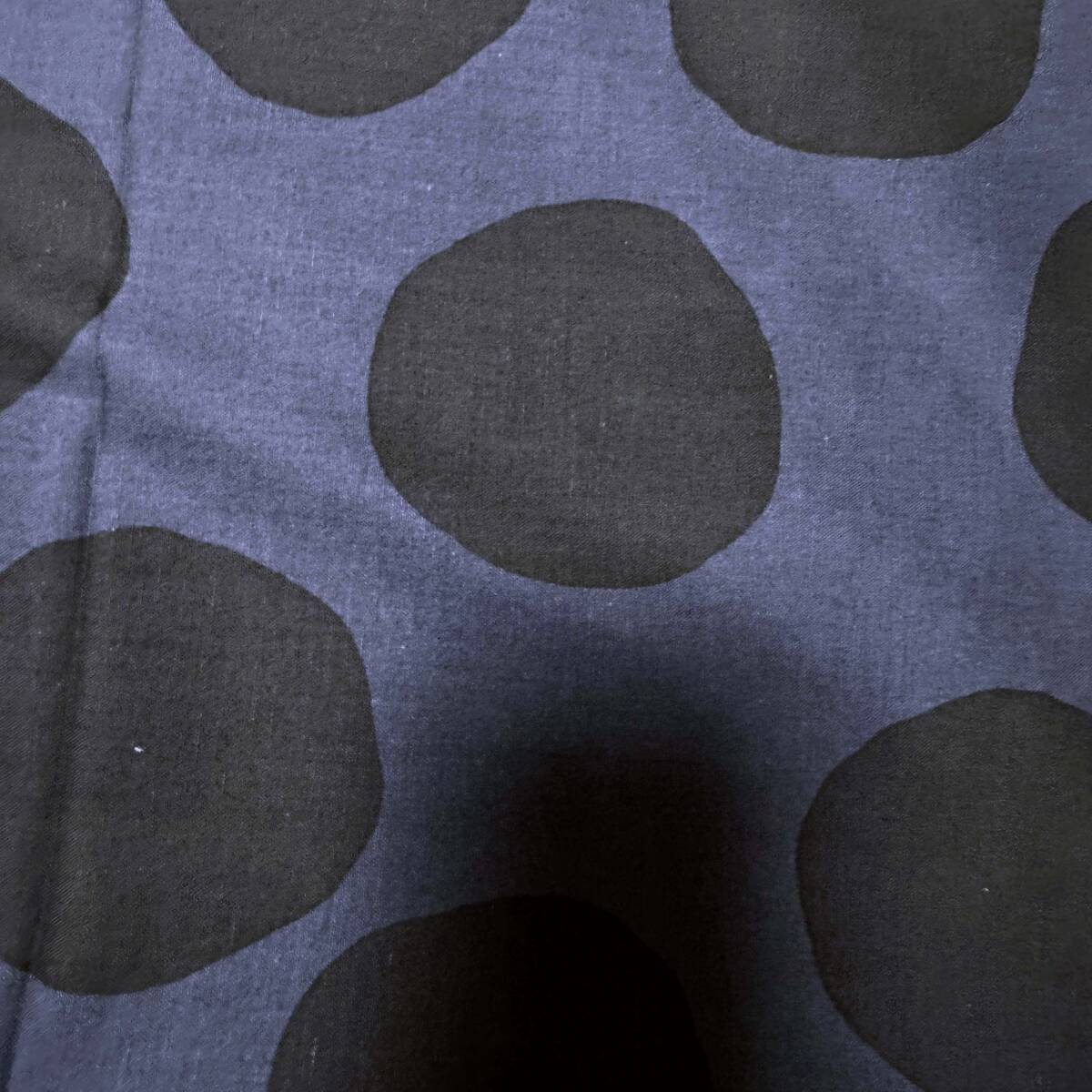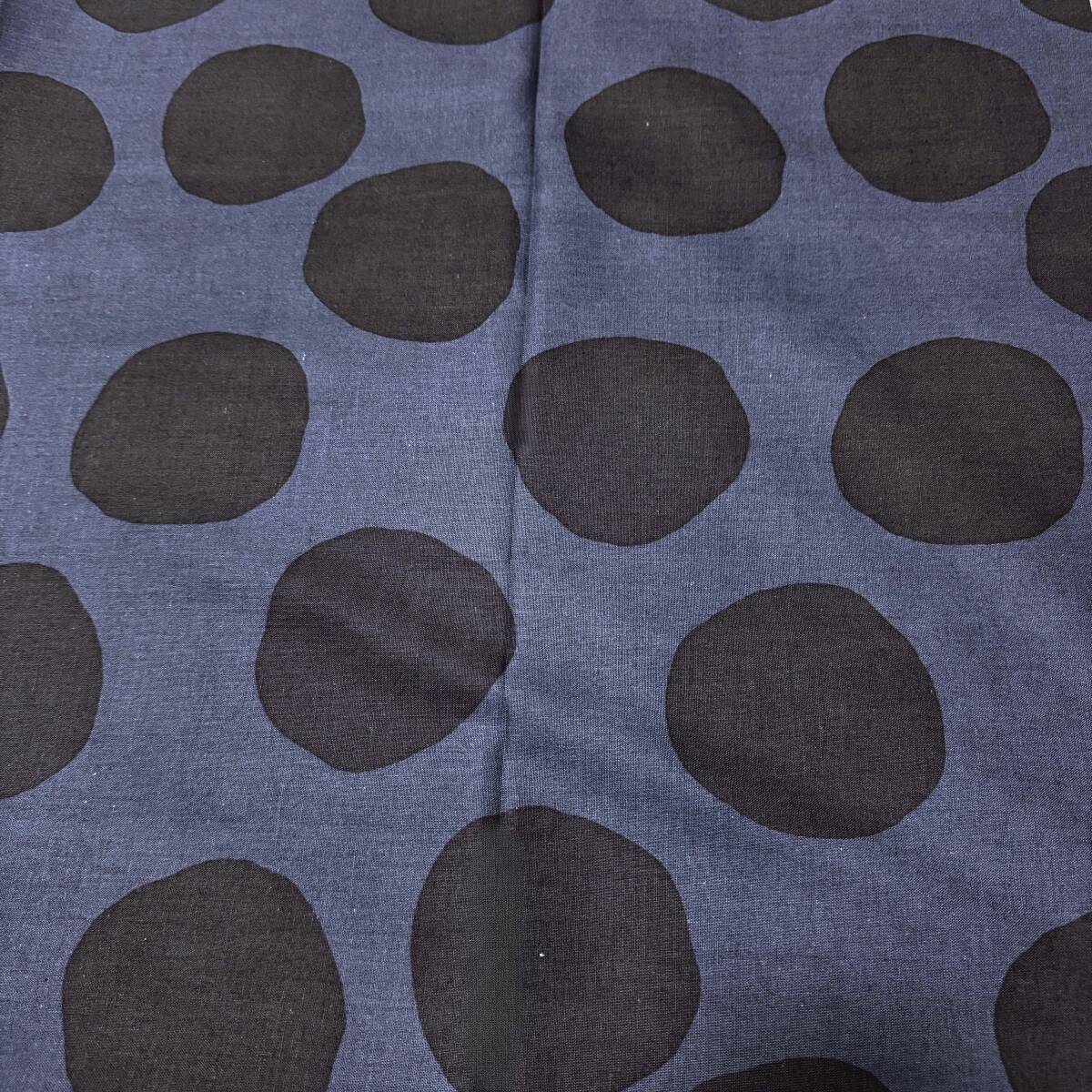 1mナチュラル手描き風ドット綿麻シーチング生地コットンリネンはぎれ布★ネイビー紺