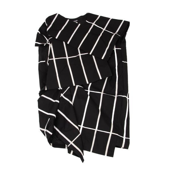 ジュンヤワタナベ コムデギャルソンJUNYA WATANABE COMME des GARCONS×マリメッコmarimekko コットン立体アシンメトリーワンピース 黒白S |