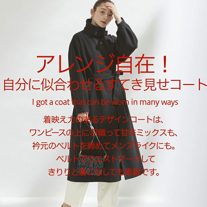 | 商品名 | ベルト付きボリューム袖ステンカラーコート |
