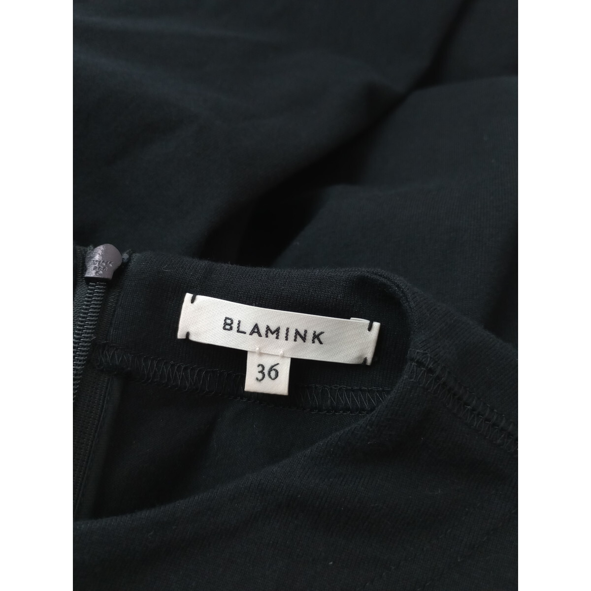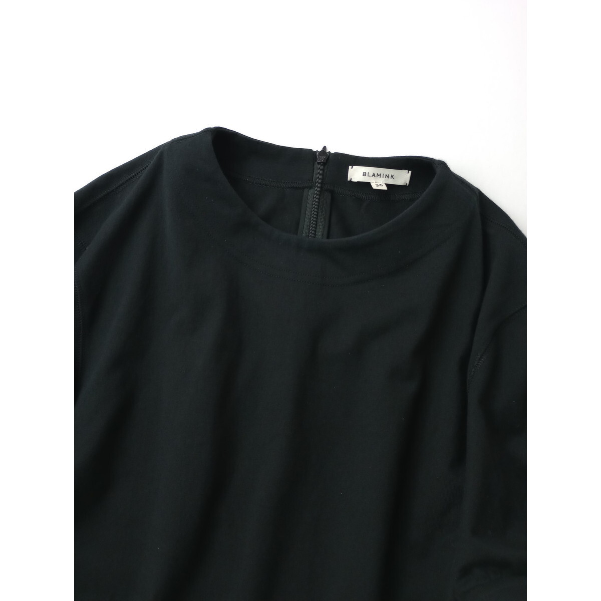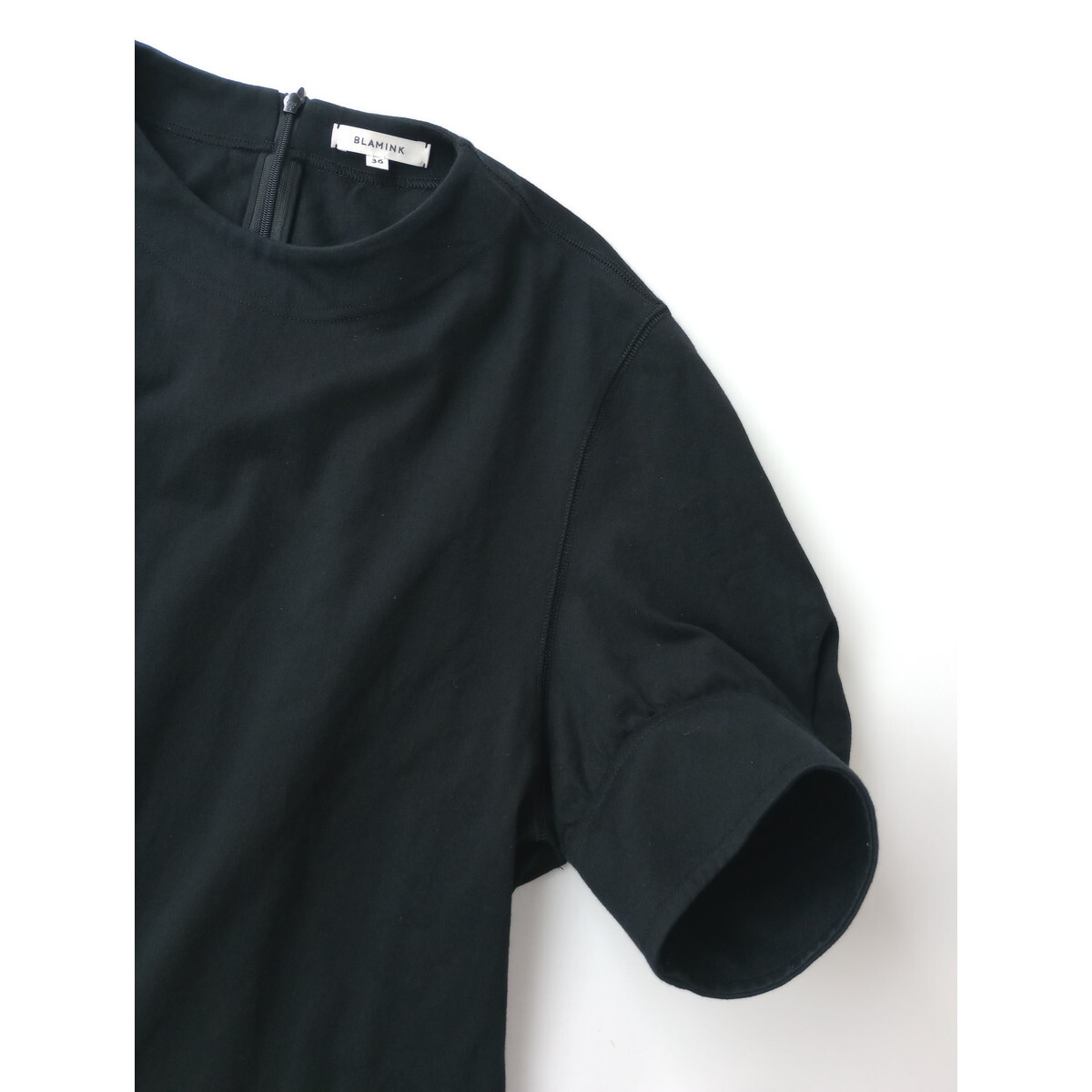22SS BLAMINK ブラミンク クルーネック ギャザー ショート スリーブ プルオーバー カットソー トップス 黒 ブラック 36