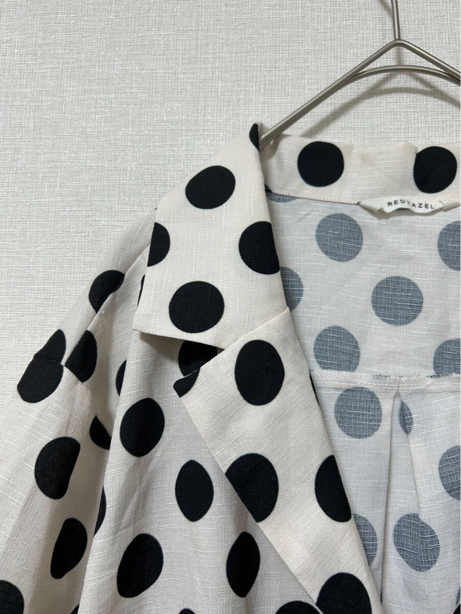 ドット柄デザインの半袖シャツ、サイズF。
