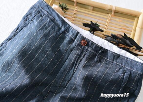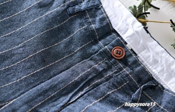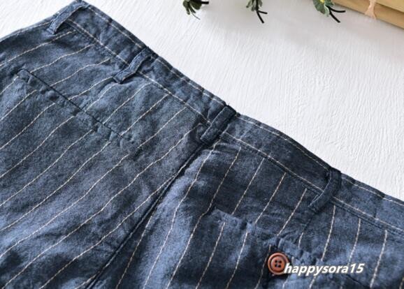 ショートパンツ メンズ ハーフパンツ  リネンパンツ 綿麻 ショーツ  短パン ストライプ柄 薄手 着心地抜群 ブルー 38