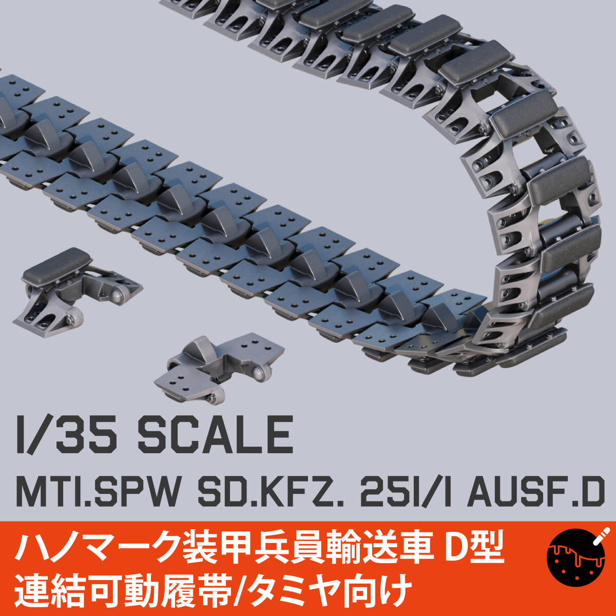 タミヤ製ハノマークD型用(35195、35151、35147)の連結可動履帯です。