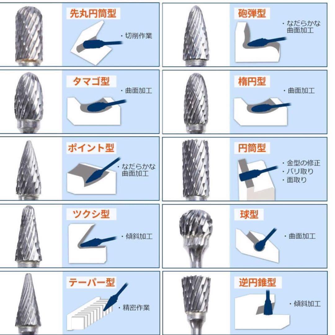 優れた素材、タングステン鋼で、超硬い素材を使用され、切削や研磨加工に優れています。リューターやドリルなど回転ツールで使って下さい。