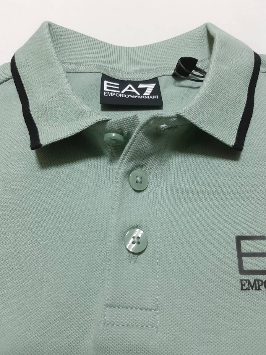 [新品] 8A(8歳) EA7 / ARMANI JUNIOR ワンポイントロゴ入り【鹿の子半袖ポロシャツ】◆2025年春夏モデル 男の子用 130cm ◆色:緑系
