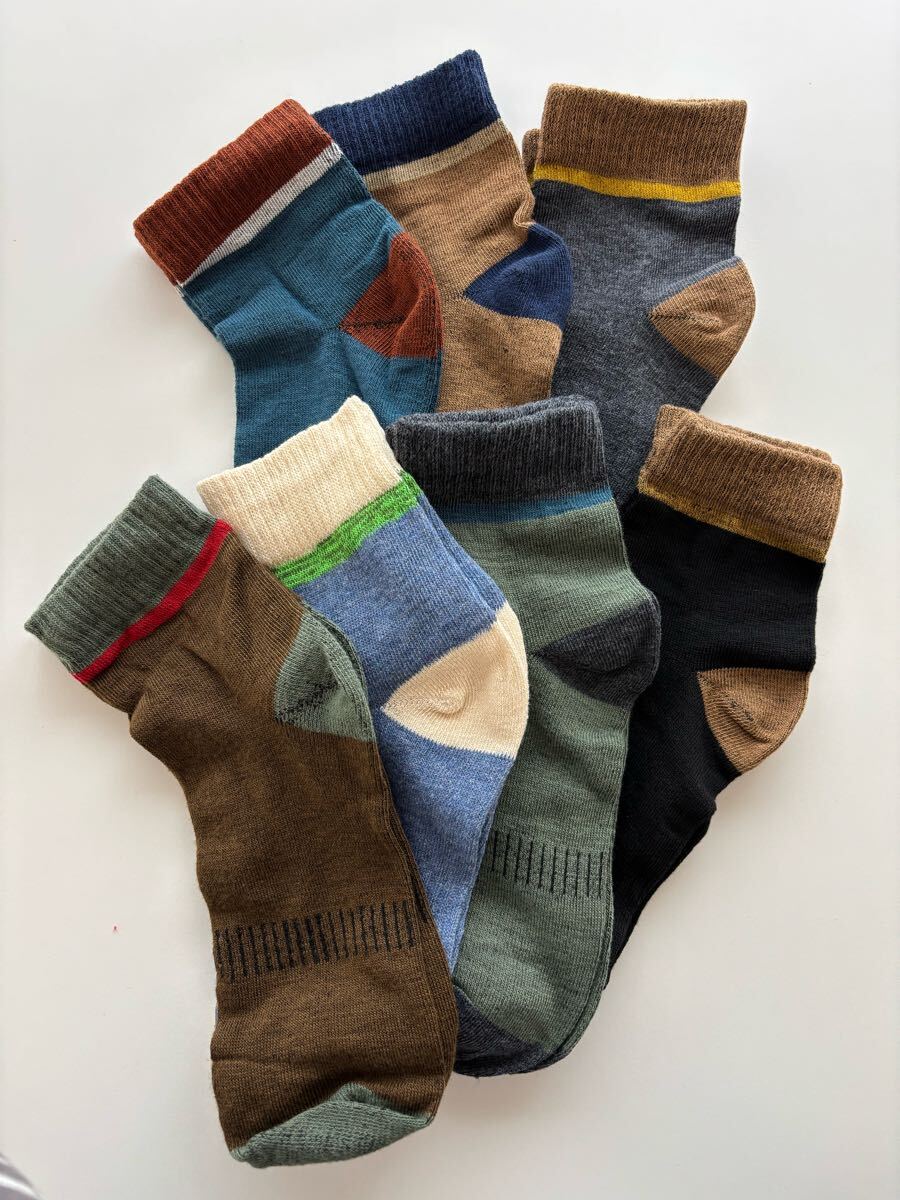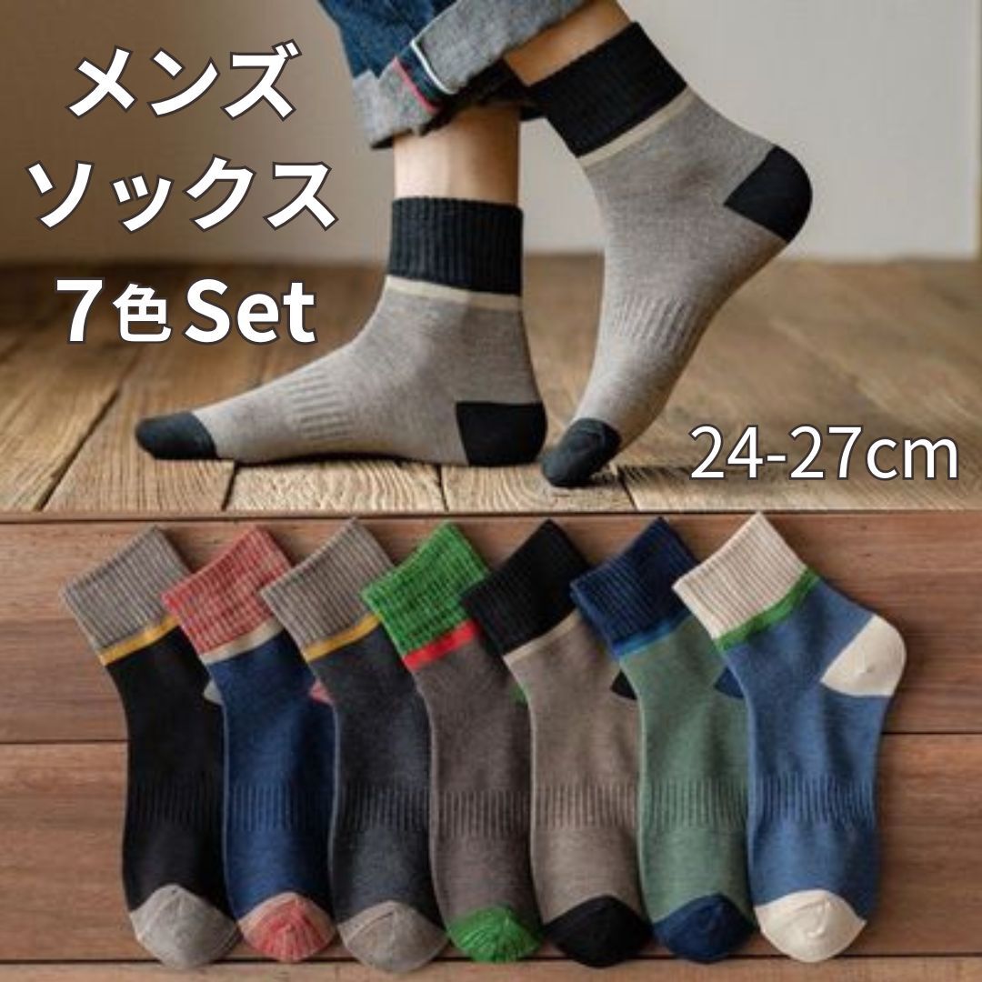 メンズソックス 7足セット 靴下 クルー 春夏秋 通気 抗菌防臭 カジュアル ビジネス カジュアル 送料無料 新品 まとめ売り