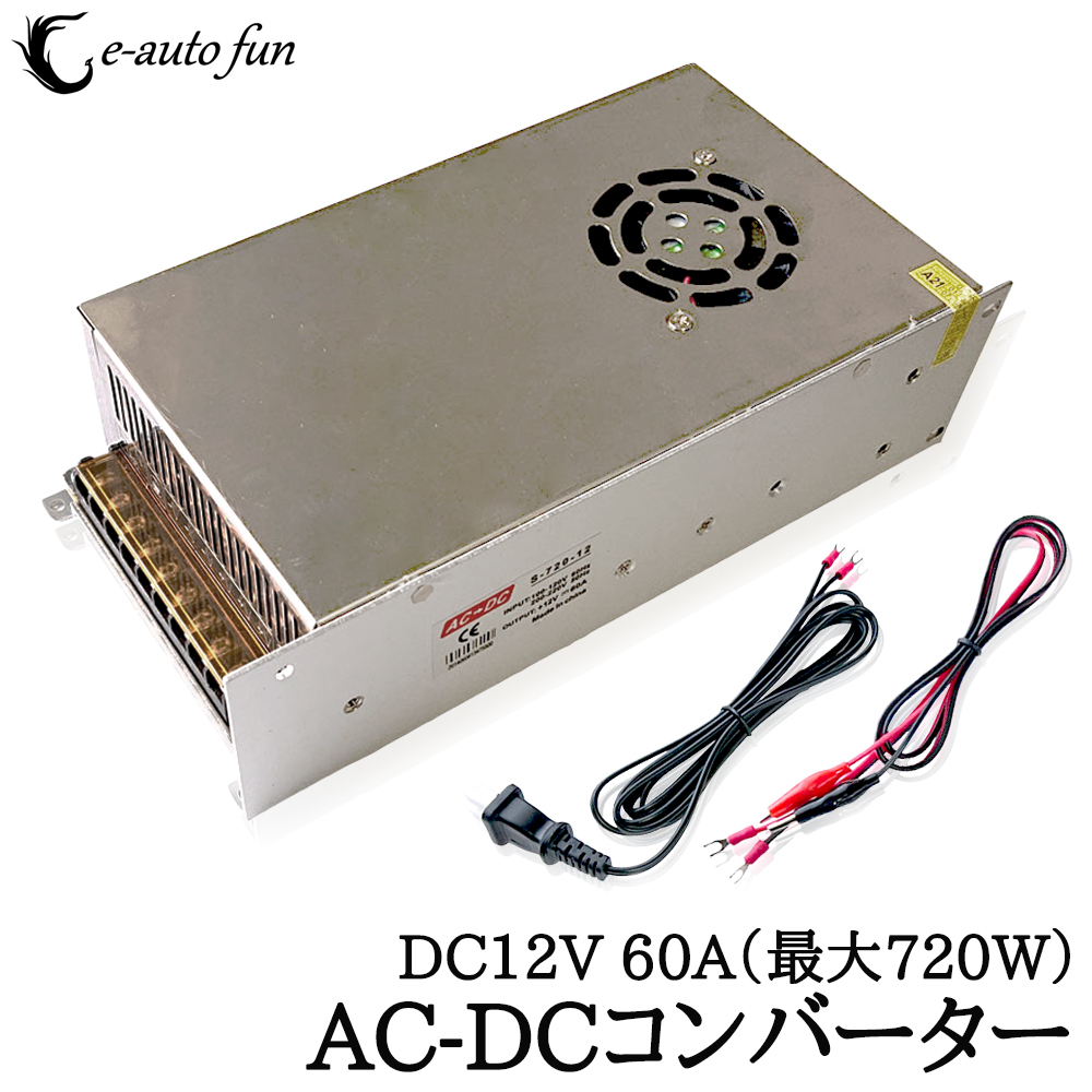 スイッチング電源 AC/DCコンバーター 入力AC100V 出力DC12V/60A 最大720W 直流安定化電源 変換器 変圧器 配線付 放熱ファン付 送料無料