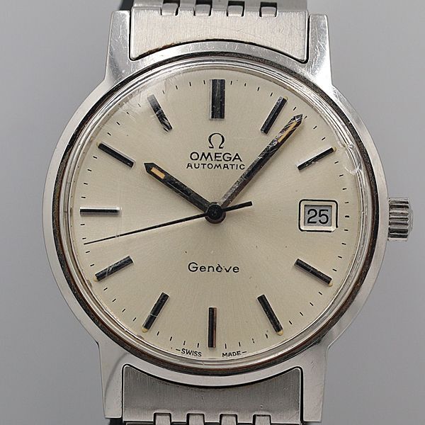 デッドストック級 稼働 オメガ ジュネーブ デイト シルバー文字盤 AT メンズ腕時計 OGH 5548ABC0561300