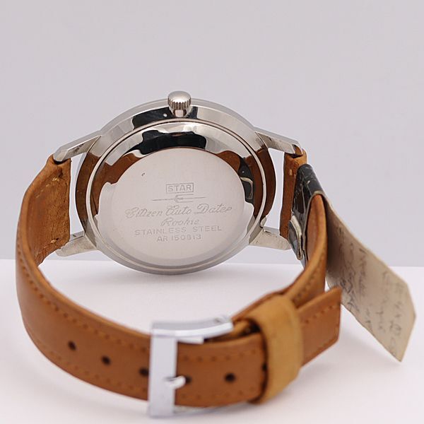 デッドストック級 稼働 良品 定価約¥7.500 シチズン AT オートデーター ルーキー シルバー文字盤 メンズ腕時計 GMY7035ABC 9158000SMD