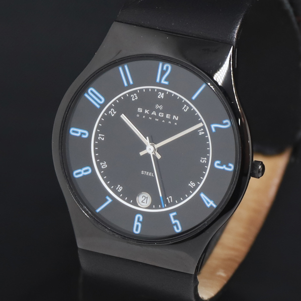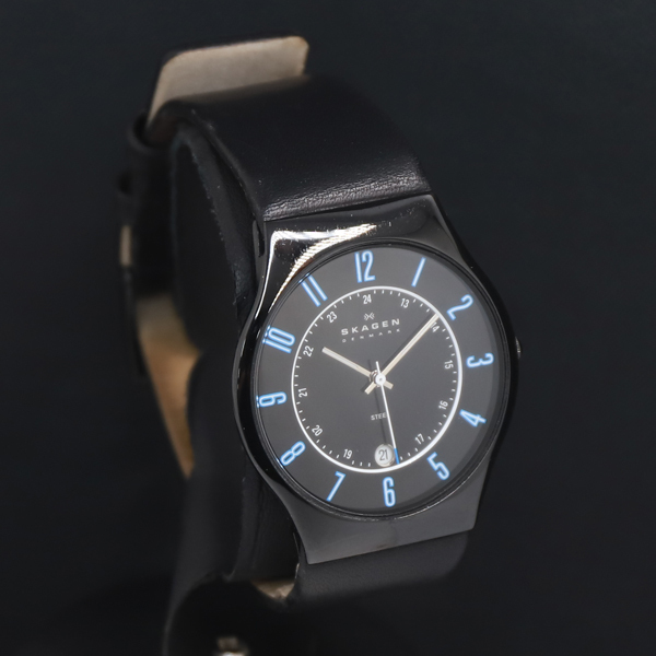 稼働 QZ スカーゲン 233XXLBLBN 黒文字盤 デイト レディース腕時計 2000000 NSK KRK