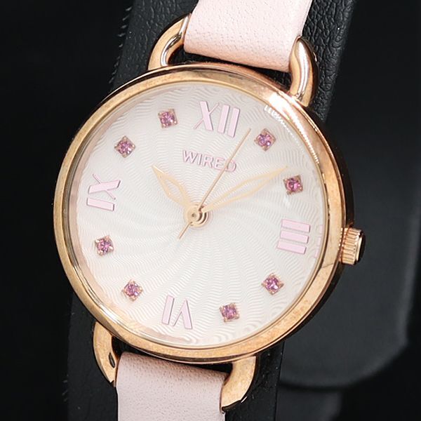 保/箱付 良品 セイコー ワイアード SS VC01-KRX0 QZ 定価約¥16500 ピンク文字盤 レディース腕時計 SGN 2000000