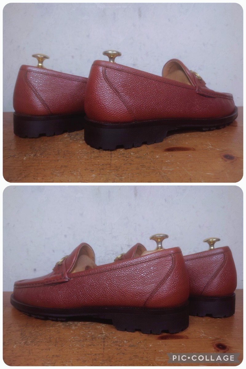 アッパーは風合い豊かなスコッチグレインレザー、ゴールドのガンチーニがアクセントになったデザインが魅力の一足。