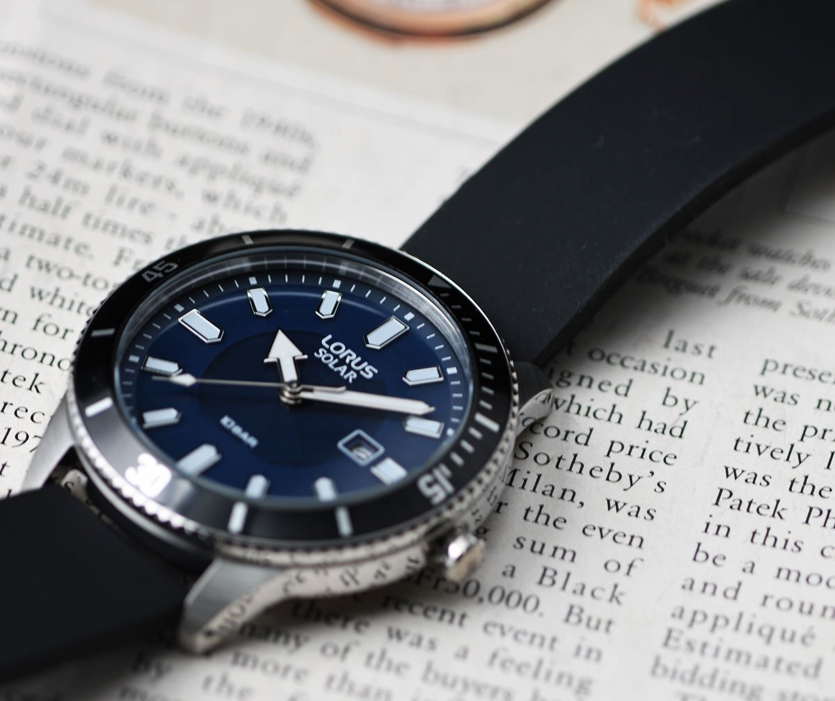 スペック的には、定期的な電池交換不要なソーラーパワー・100m(10気圧)防水、デイトカレンダー等々充実。
