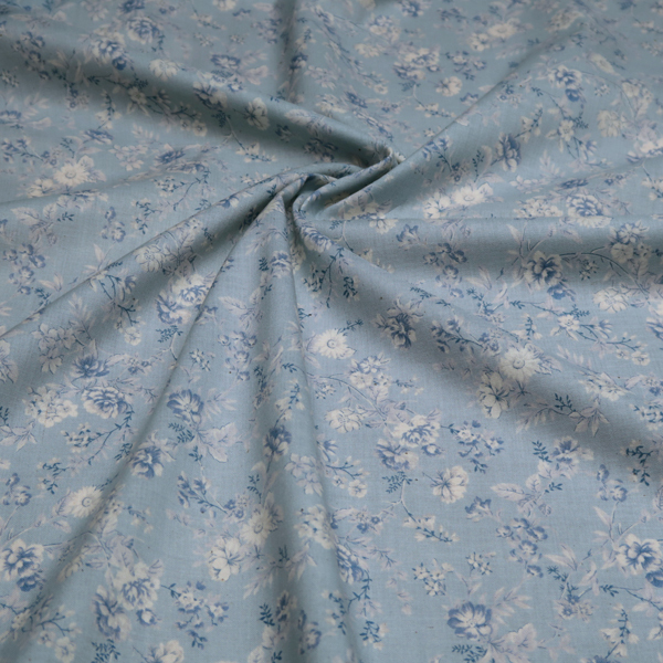 ハギレ 1.1m イングリッシュガーデン スケア生地 ワイルドローズ 花柄 コットン パウダーブルー