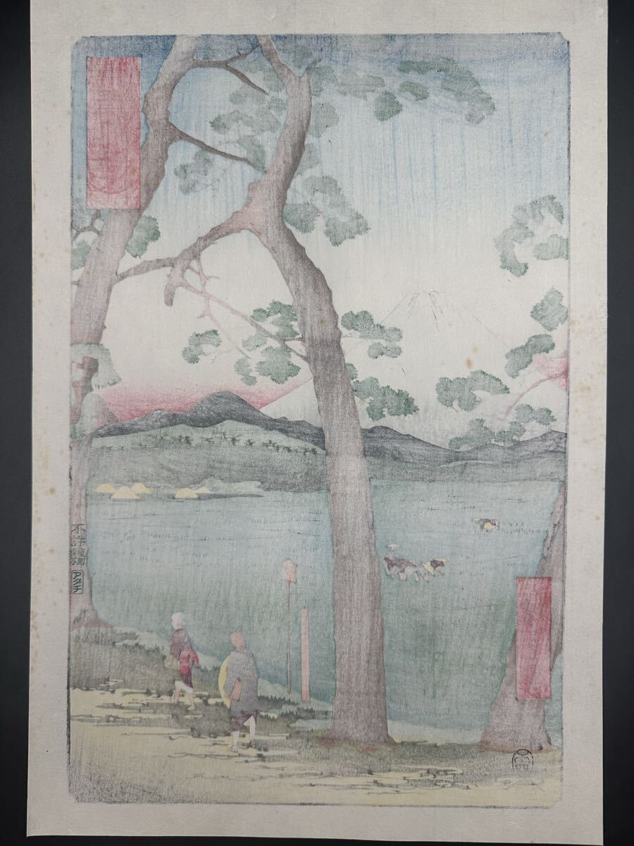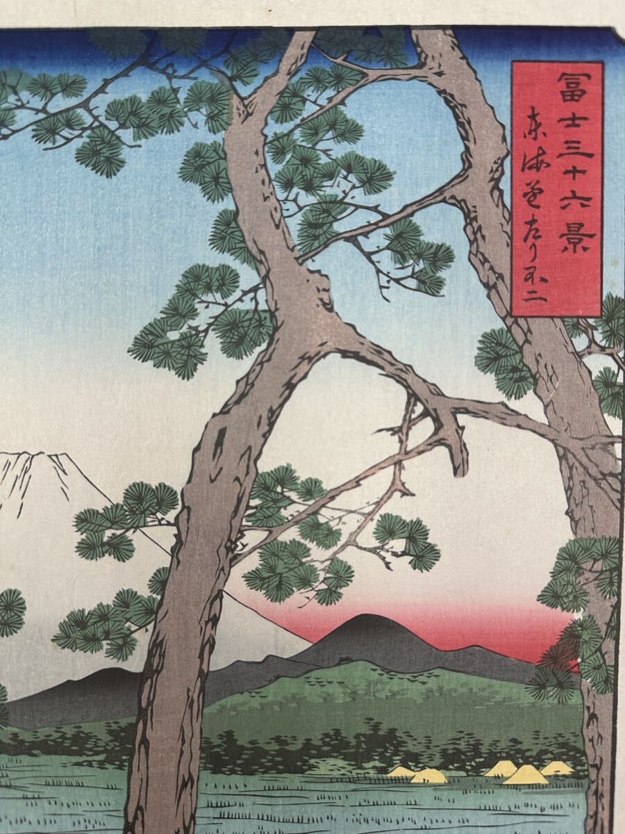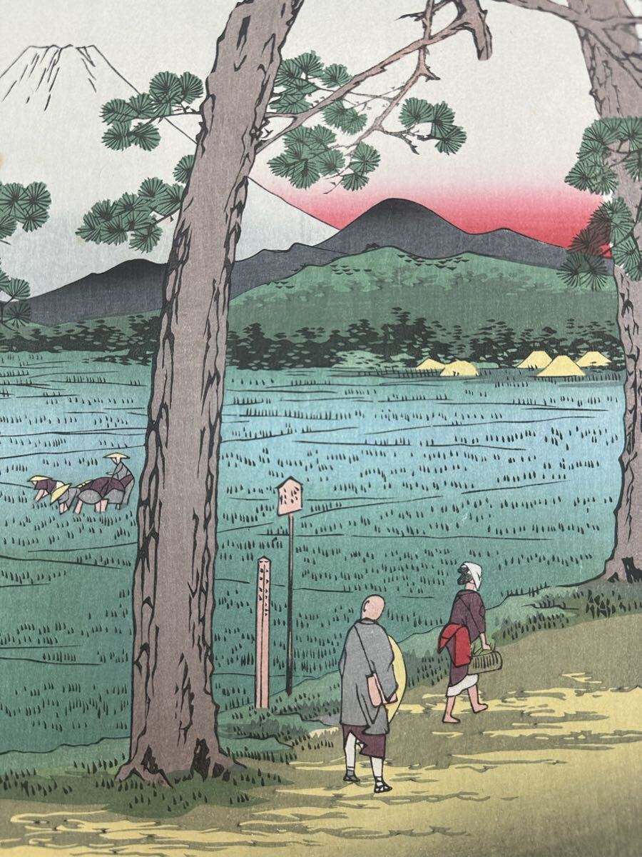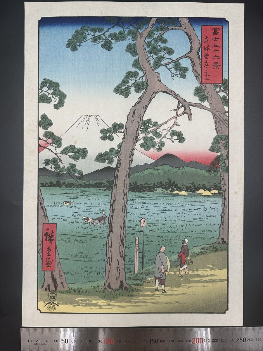 【真作】大正期 浮世絵木版画 歌川広重「冨士三十六景 東海道左り不二」名所絵 大判 錦絵 保存良い 大判