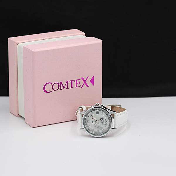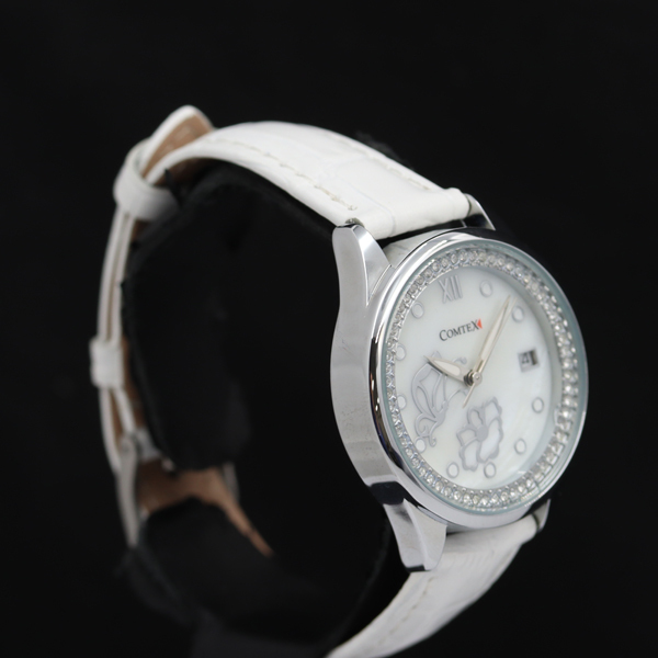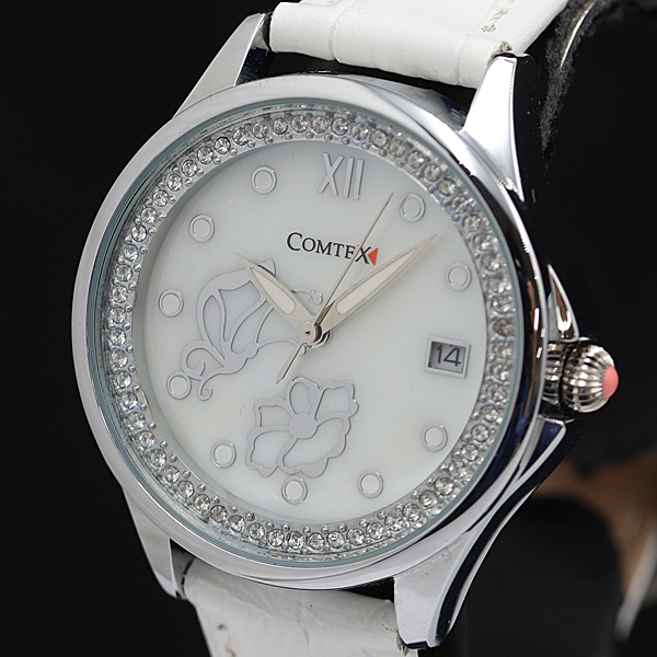 箱付 稼働 コムテックス QZ ホワイト文字盤 ストーンベゼル シェル レディース腕時計 2000000 NSK KMR