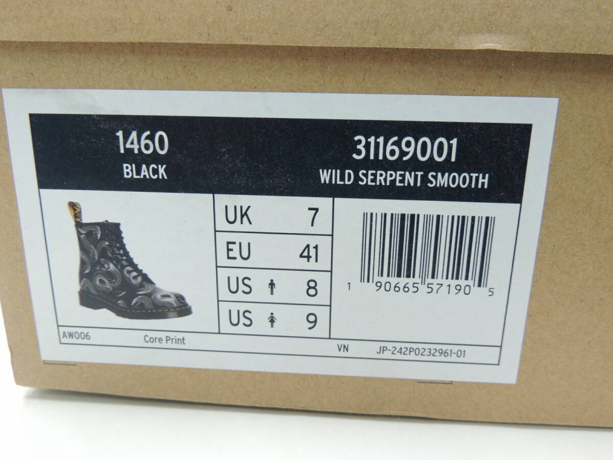 ★ 新品 UK7 26cm 定価30800円 ドクターマーチン Dr.Martens 1460 WILD SERPENT SMOOTH スネーク柄 ヘビ柄 8ホール ブーツ 黒 ブラック