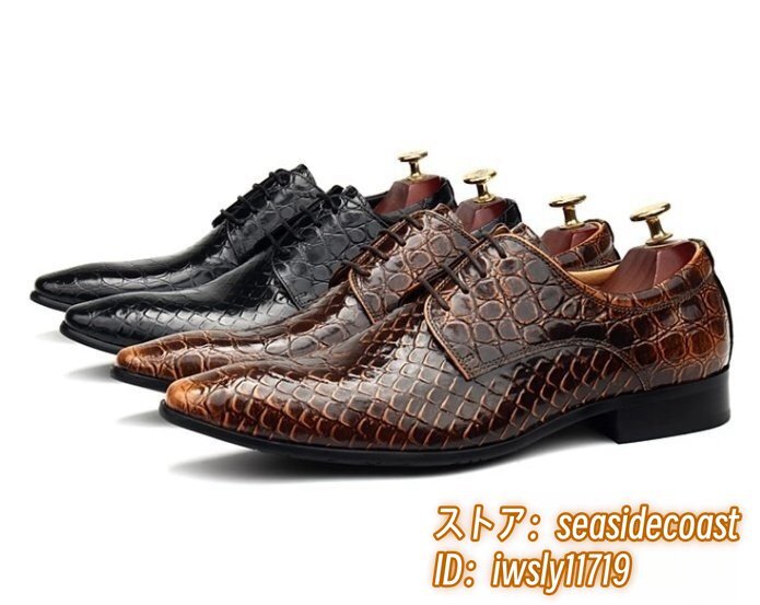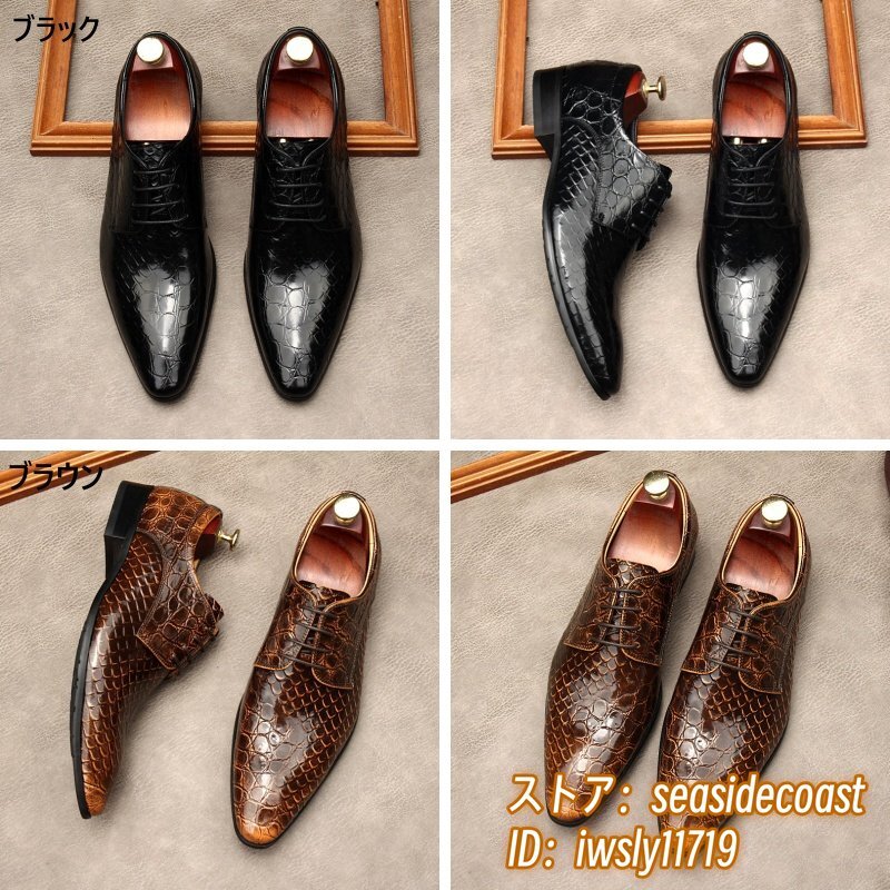 定価10万超★最高級 メンズ ビジネスシューズ 鰐柄 本革 レザーシューズ 牛革 イギリス風 職人手作り 紳士靴 革靴 結婚式 ブラック 26.5cm