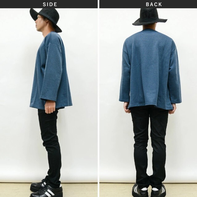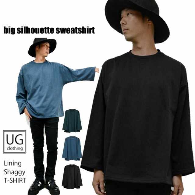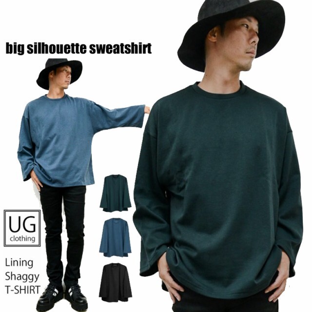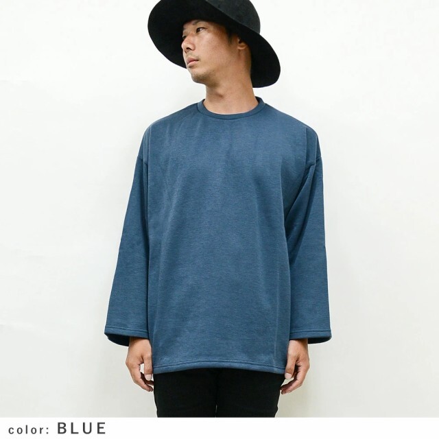 1円スタート  ビッグシルエット 裏シャギー トレーナー無地 rv8203メンズ ロングカットソー ロンT 新品ブルー M