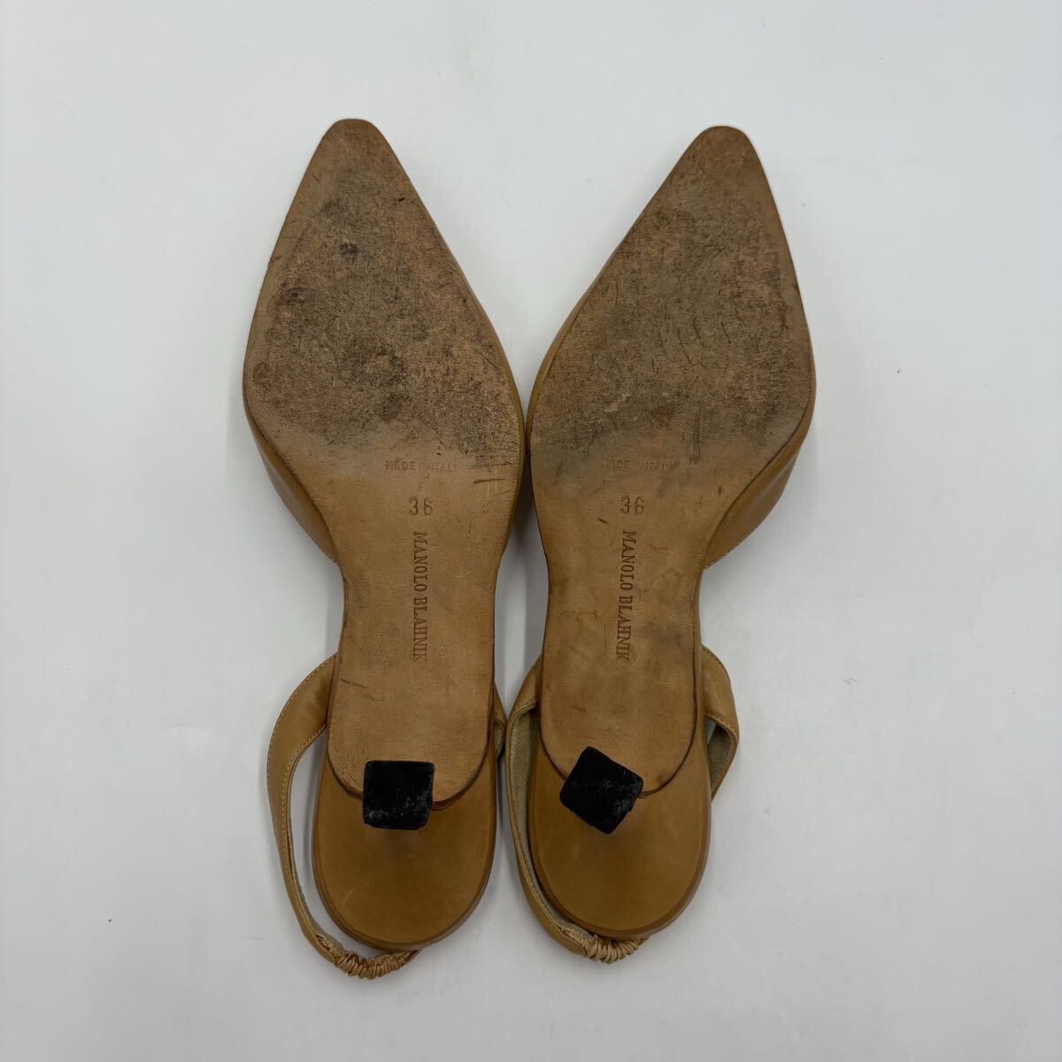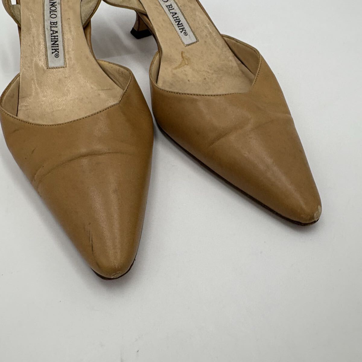 O ■ イタリア製 '高級感溢れる' MANOLO BLAHNIK マノロブラニク 本革 レザー ポインテッドトゥ ヒール サンダル EU36 22.5cm 靴 シューズ